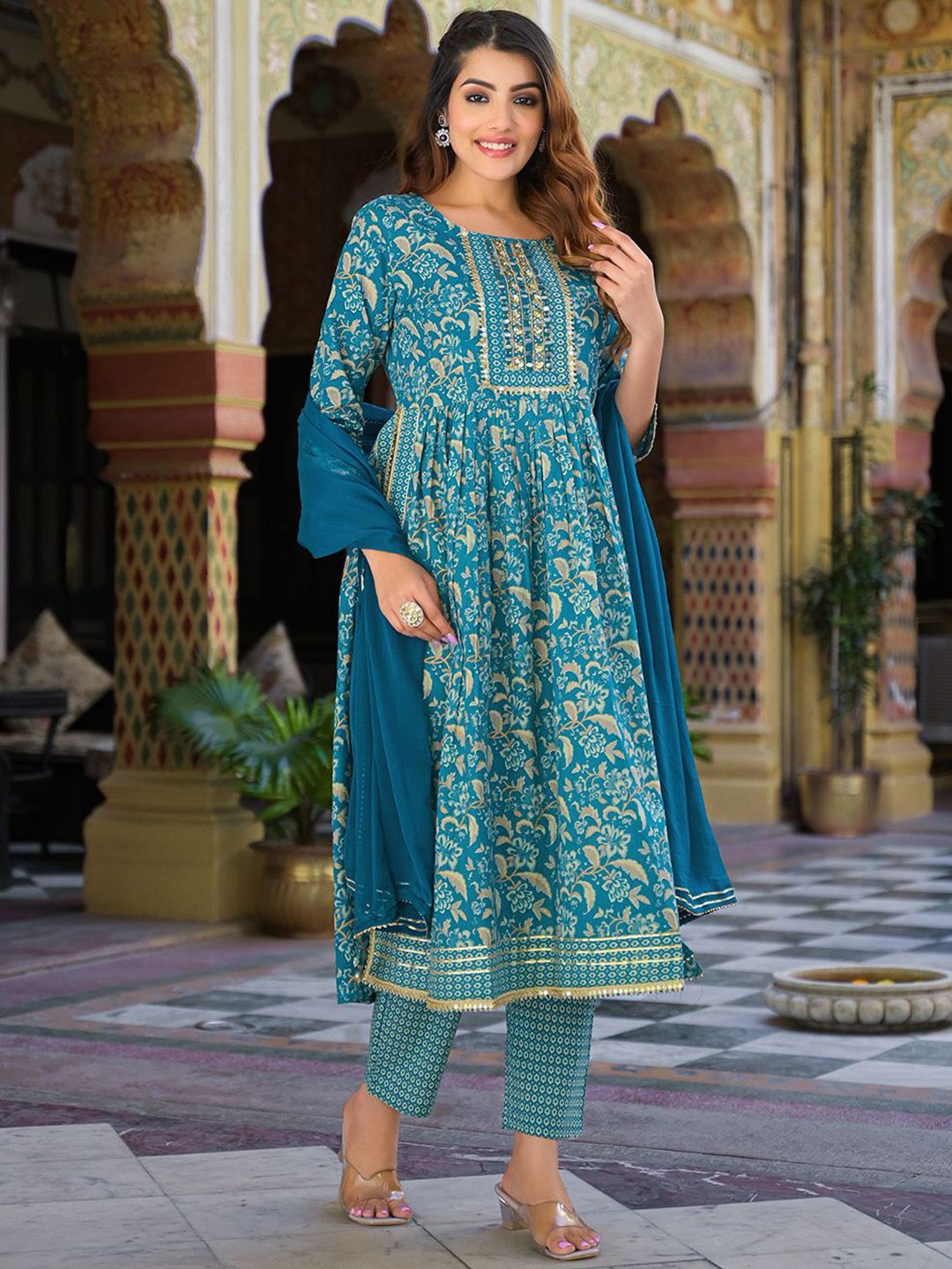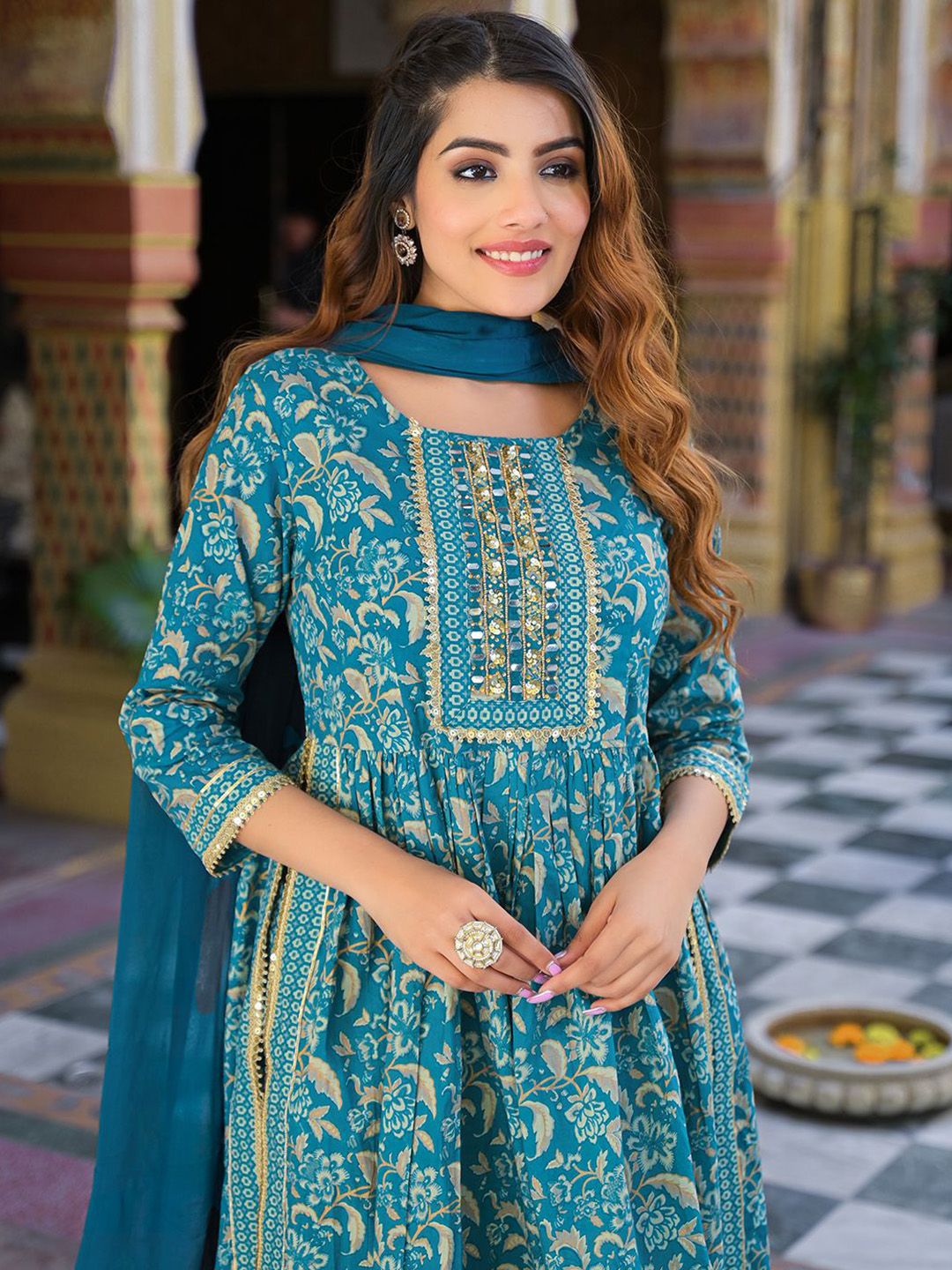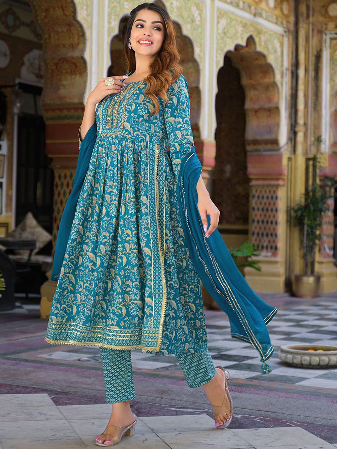Divena Women Floral Embroidered Pure Cotton Kurta with Trousers & Dupatta