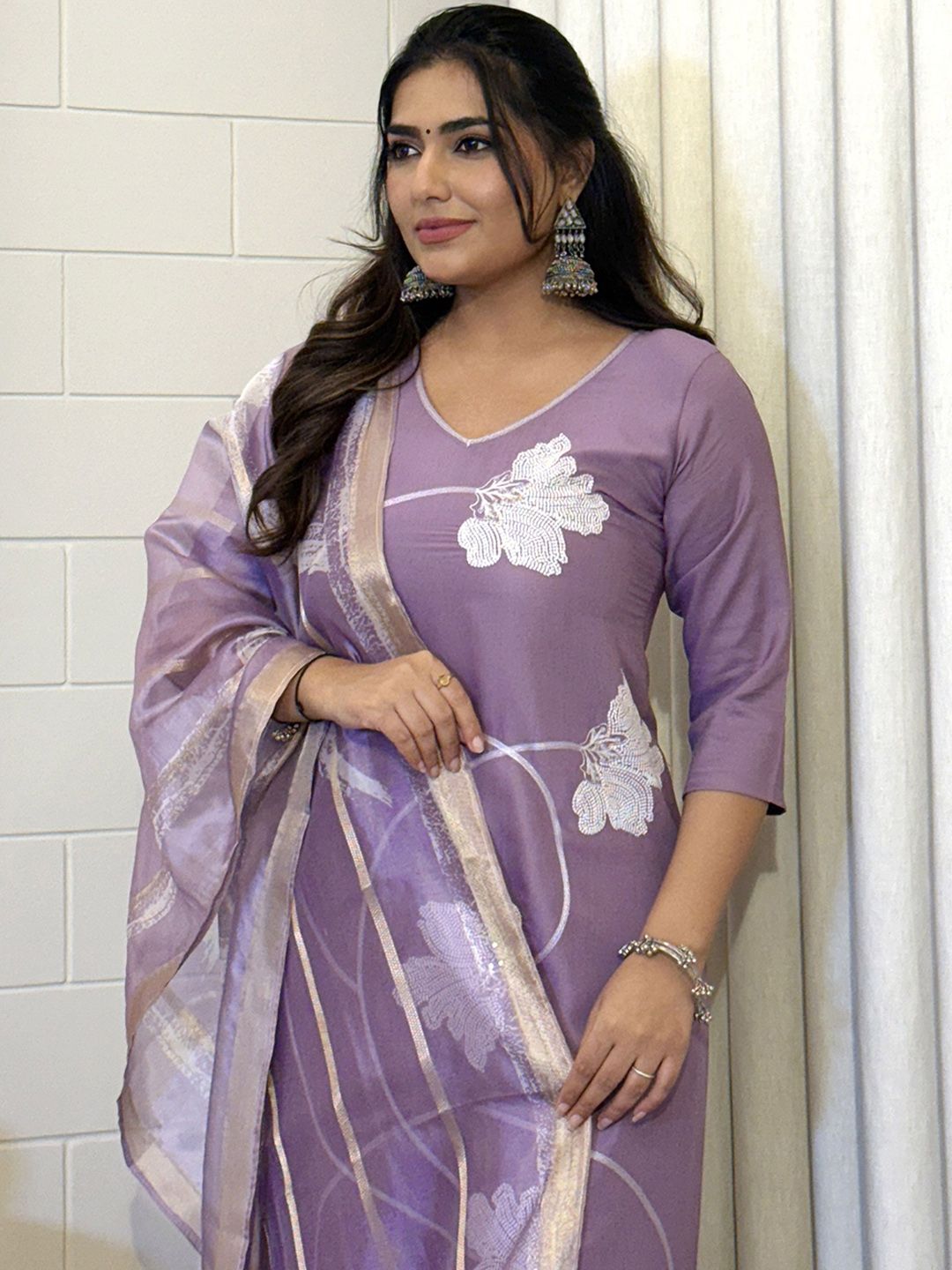 Divyadham Textiles Women Floral Embroidered Sequinned Kurta & Trousers With Dupatta