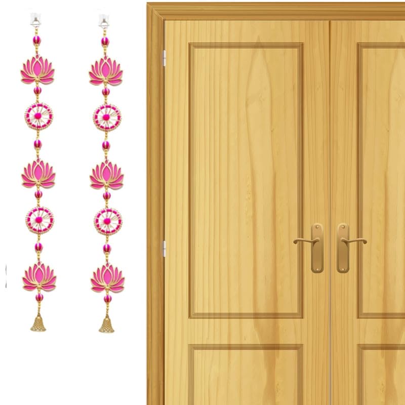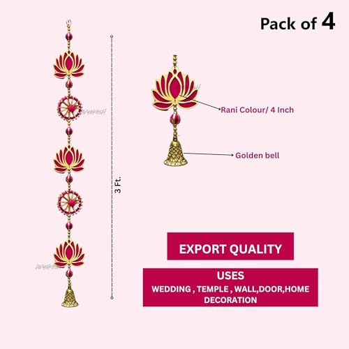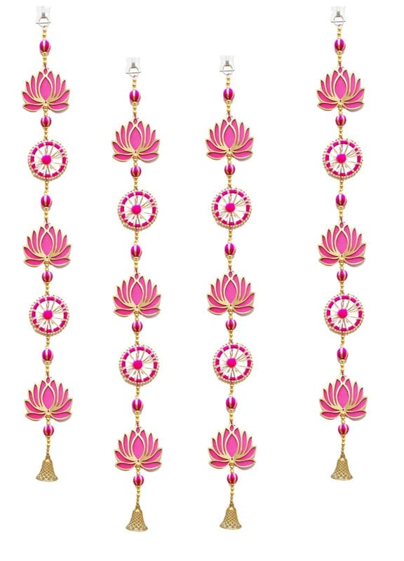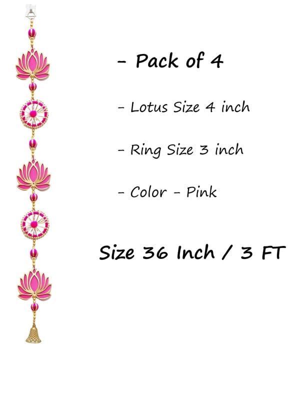 One Packet Contains : 4 Handmade Hangings / Latkan as shown in Image ; Best Quality Lotus is 4 inch (With Color on Both Sides) ; Color Pink / Raani. Hanging Size - 36 Inch / 3 Ft each. Material Used - Best selling Lotus with Golden Moti , Pink Ring sorrounded by White & Golden Pearls , Pink Gotta ball & Decorative Golden Bell Best For: Lotus Hangings Is The Best Product To Decorate Your House During Any Special Occasion, Pooja Decoration Items For Festival ,Diwali Decoration Items For Home , Pooja Room Decoration Items For Home , Wall Decoration Items For Diwali , Wall Hangings For Home Decoration Etc Ideal for Festivals, Room decoration, Marriage Decoration, House Decoration, Diwali, Janmashtmi , Ganpati, Rakshabandhan, Decoration in General and All kinds of Occassions. These strings can be used for making ceiling fall floral lines, railings, floral canopy , shamiyana and mandap front/back drops , mezzanine hall decors etc. The strings are re-usable, re-fixable.