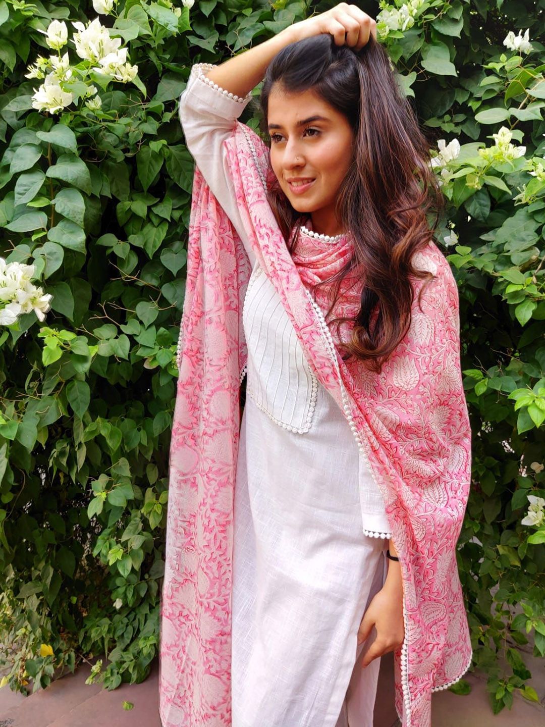 DMUNESH FASHION Floral Yoke Design Straight Kurta With Trousers & Dupatta