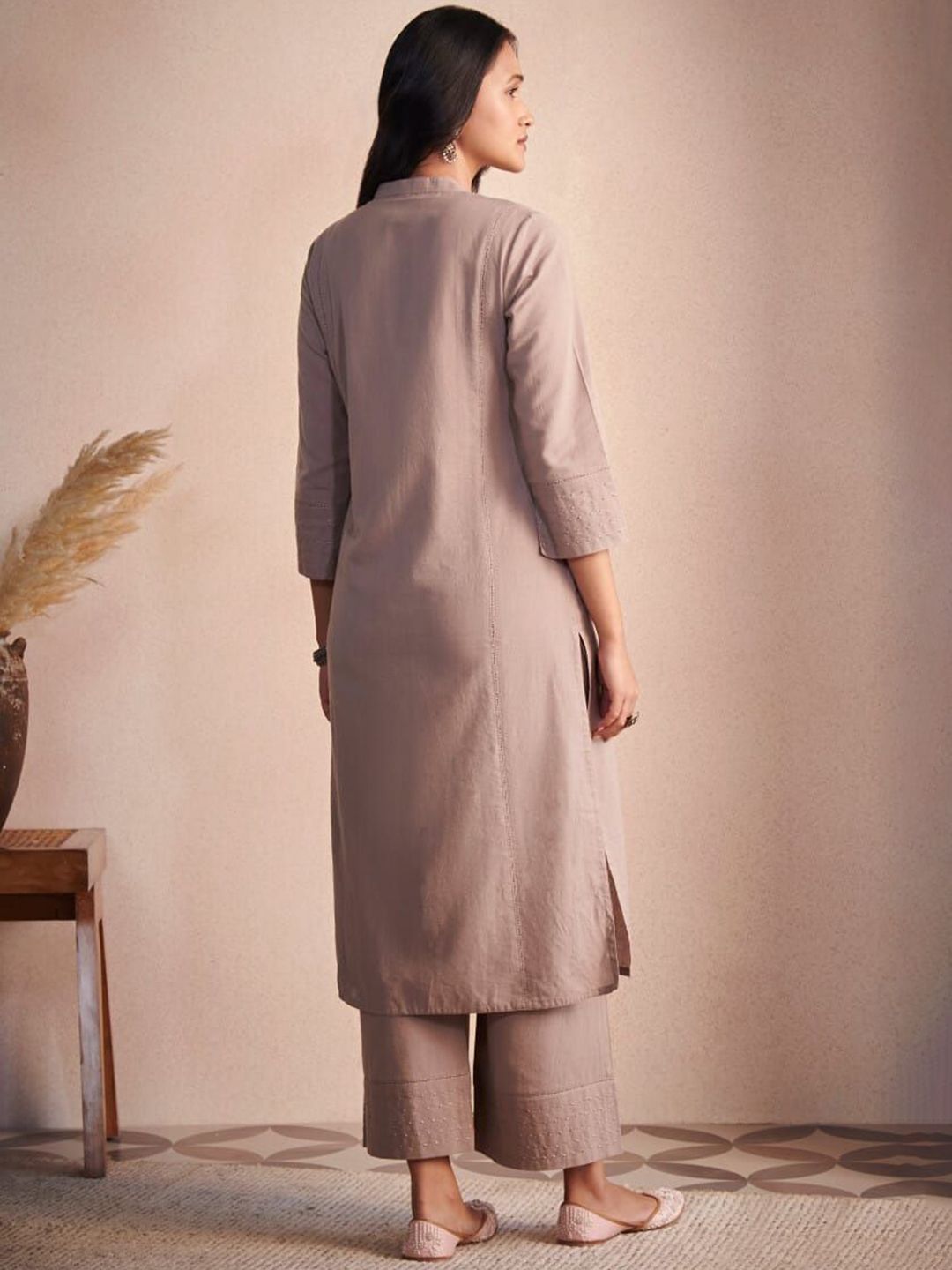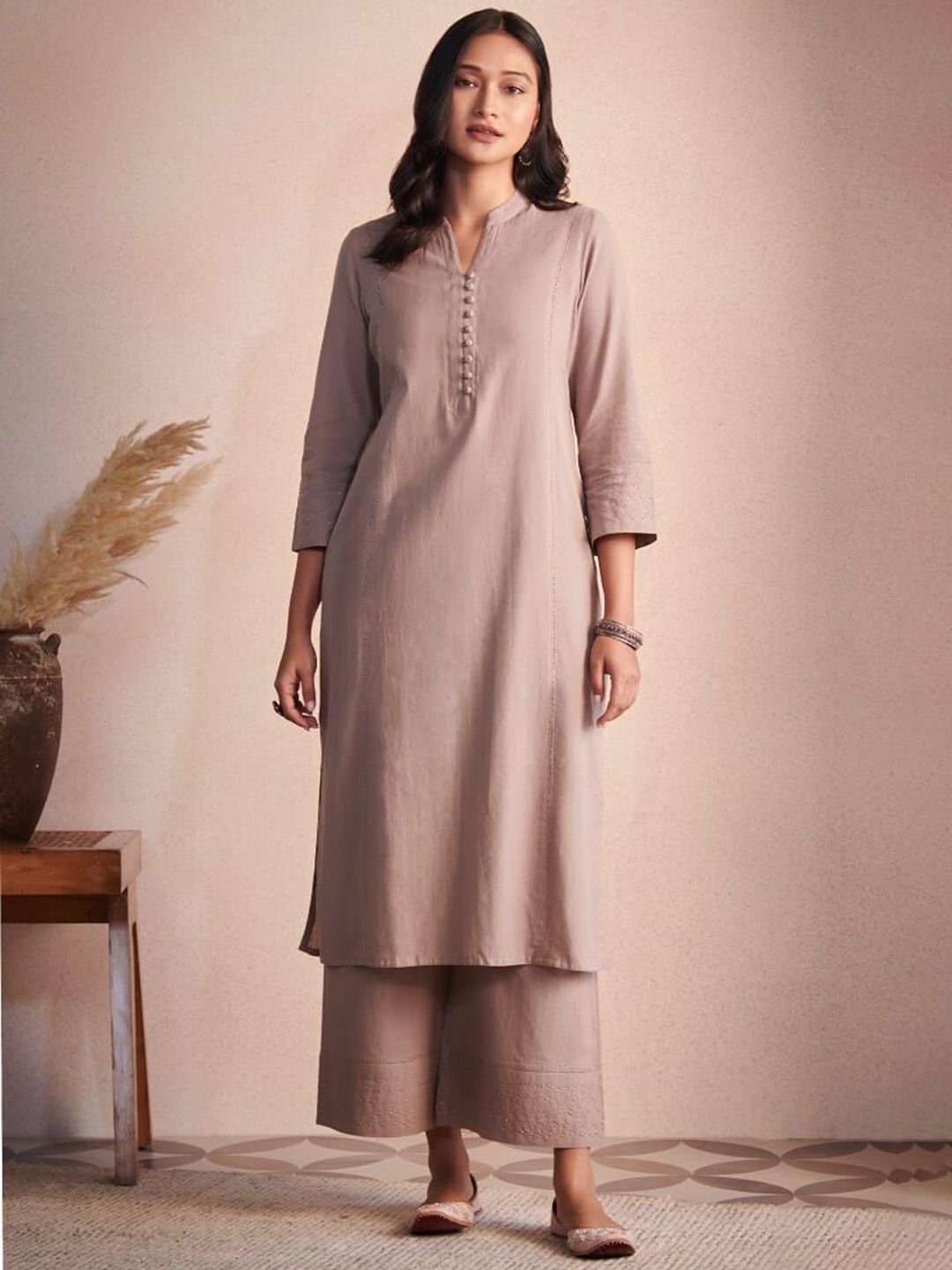 DMUNESH FASHION Mandarin Collar Sequinned Straight Kurta With Palazzos & Dupatta
