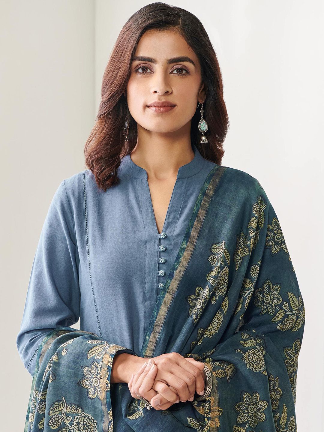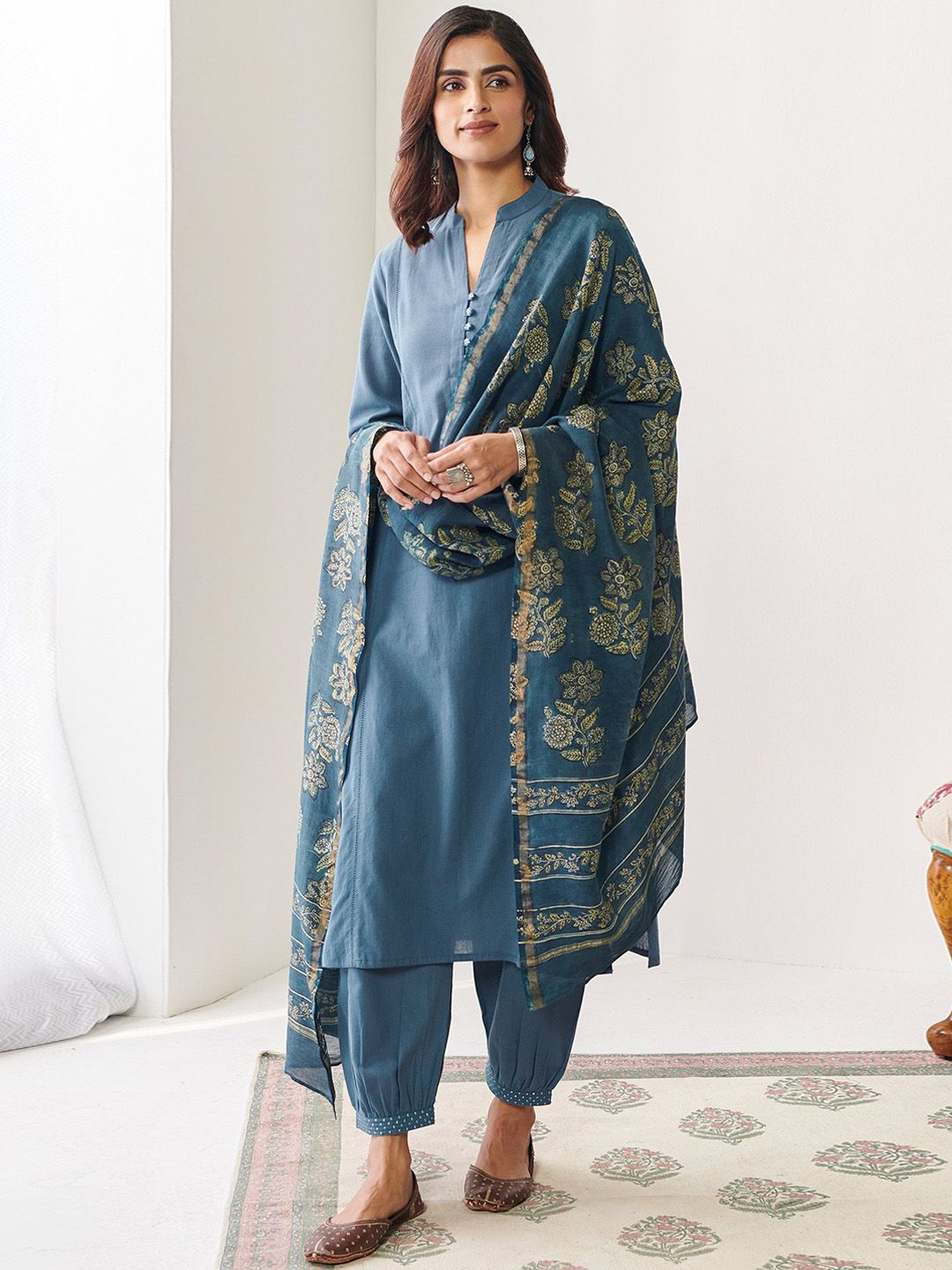 DMUNESH FASHION Mandarin Collar Straight Kurta With Patiala