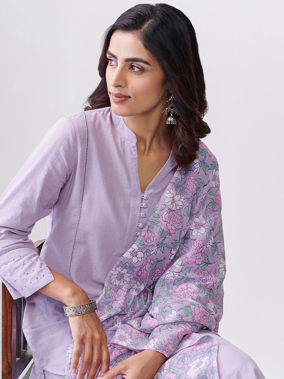 DMUNESH FASHION Mandarin Collar Straight Kurta With Salwar And Dupatta