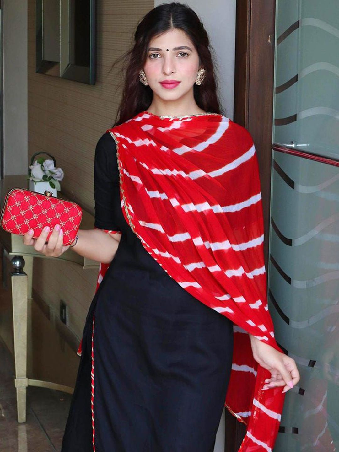 DMUNESH FASHION Sweetheart Neck Straight Kurta With Trousers & Dupatta