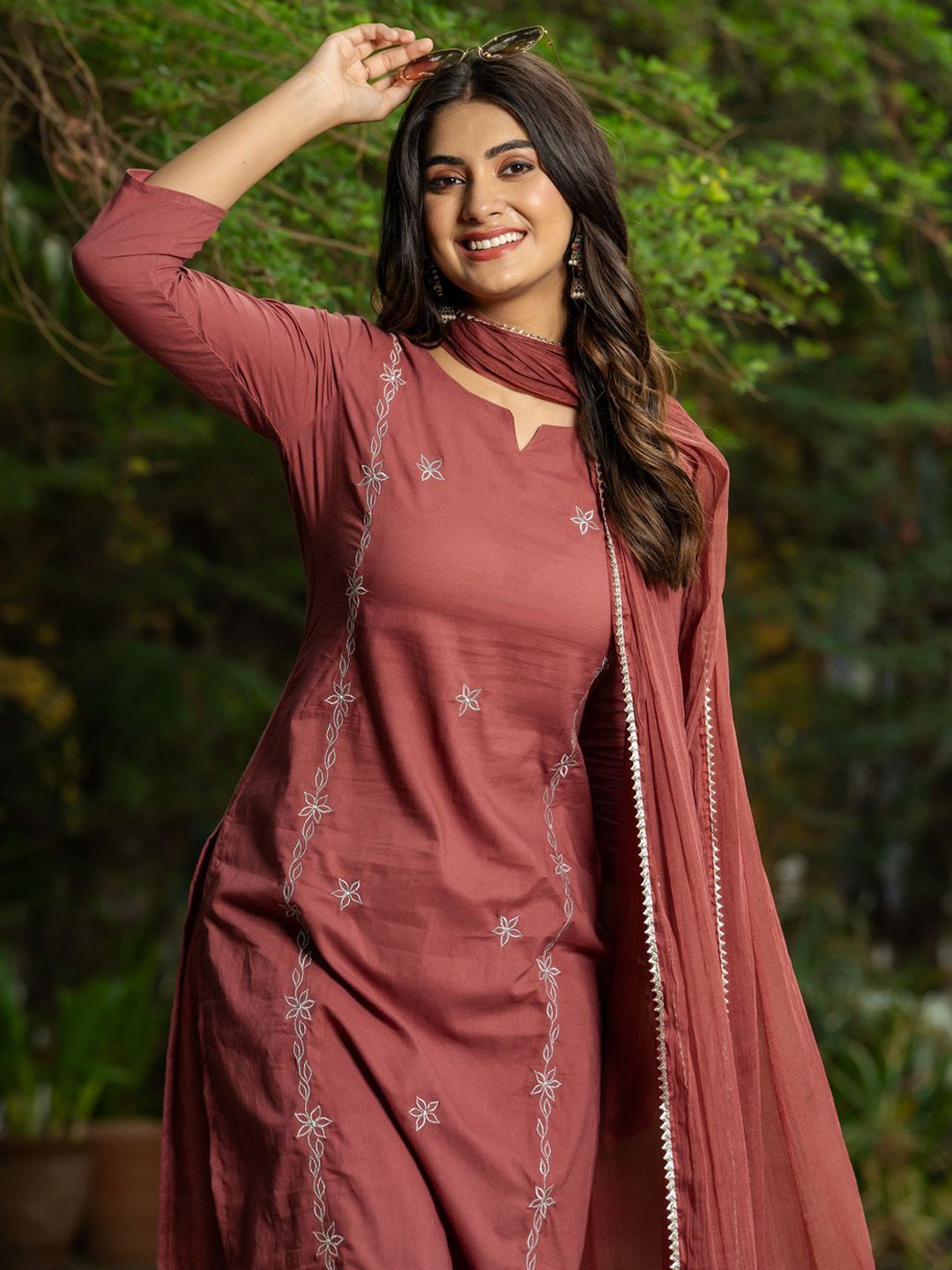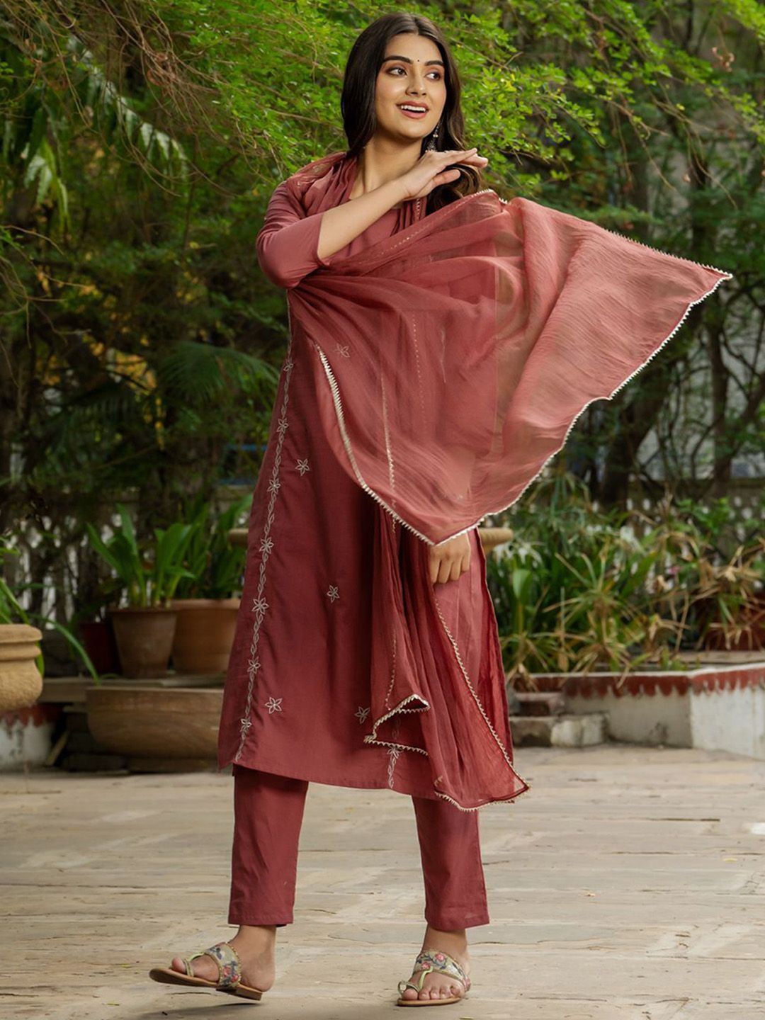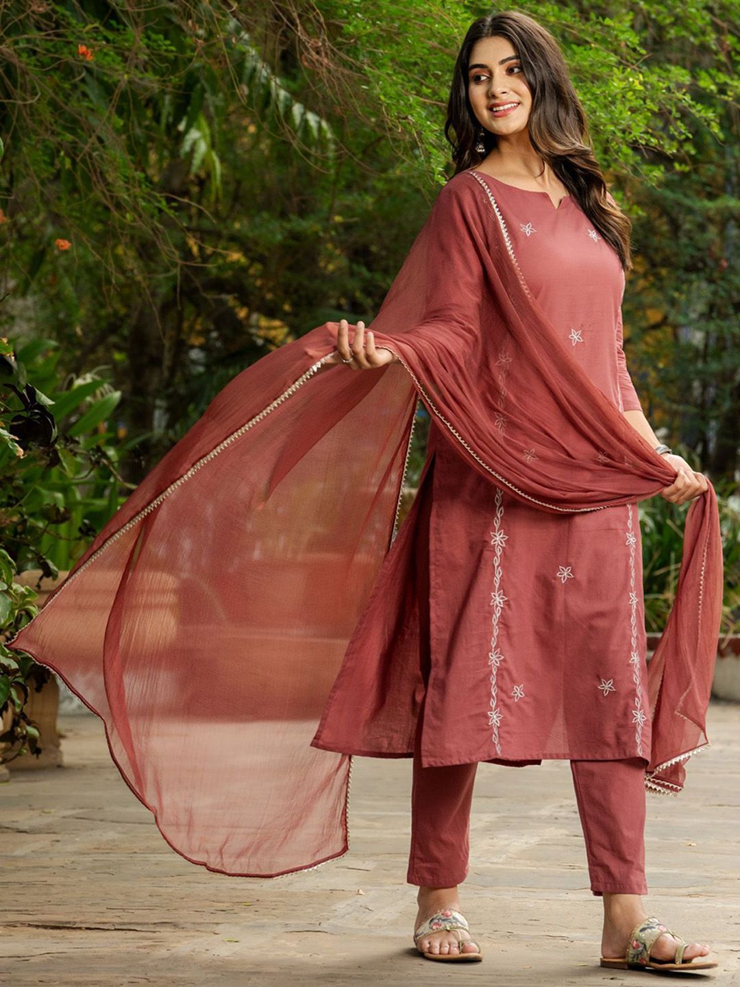 Buy this stylish DMUNESH FASHION Women Ethnic Motifs Embroidered Kurta with Trouser & Dupatta at Marincart Nepal. This product offers great quality and value. Perfect for those looking for the latest trends in fashion. Get yours now at unbeatable prices.