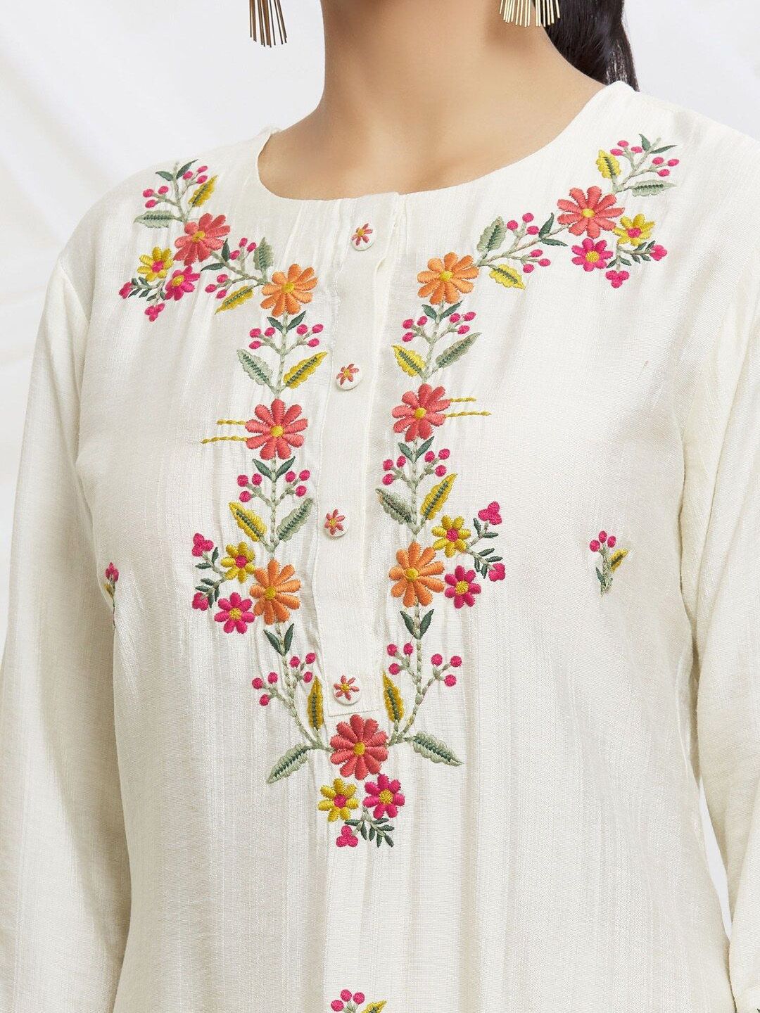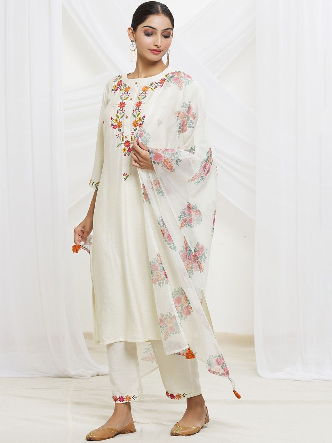 Buy this stylish DMUNESH FASHION Women Floral Embroidered Regular Thread Work Kurta with Pyjamas & Dupatta at Marincart Nepal. This product offers great quality and value. Perfect for those looking for the latest trends in fashion. Get yours now at unbeatable prices.
