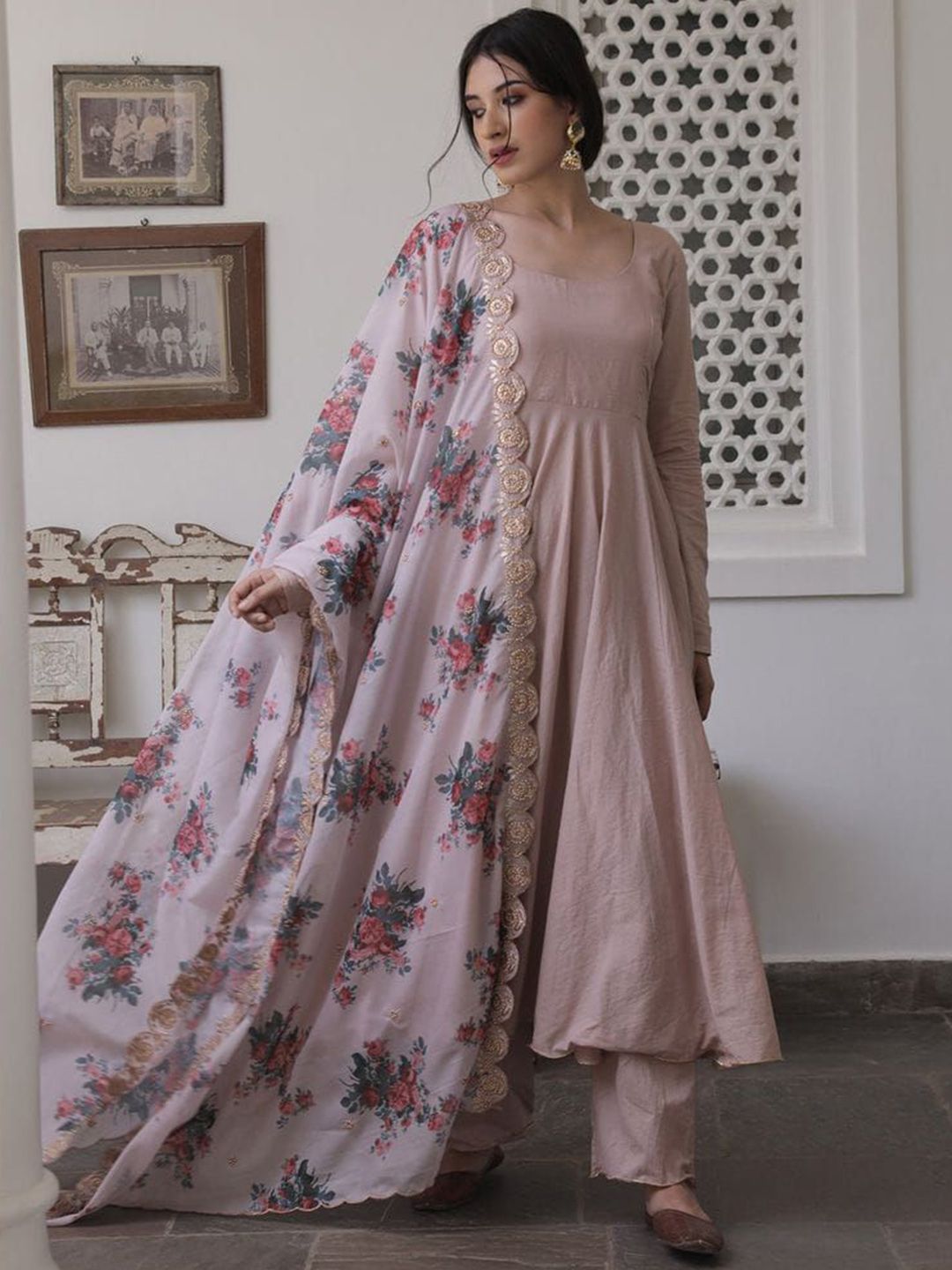 DMUNESH FASHION Women Solid Gotta Patti Anarkali Kurta with Pyjamas & Dupatta