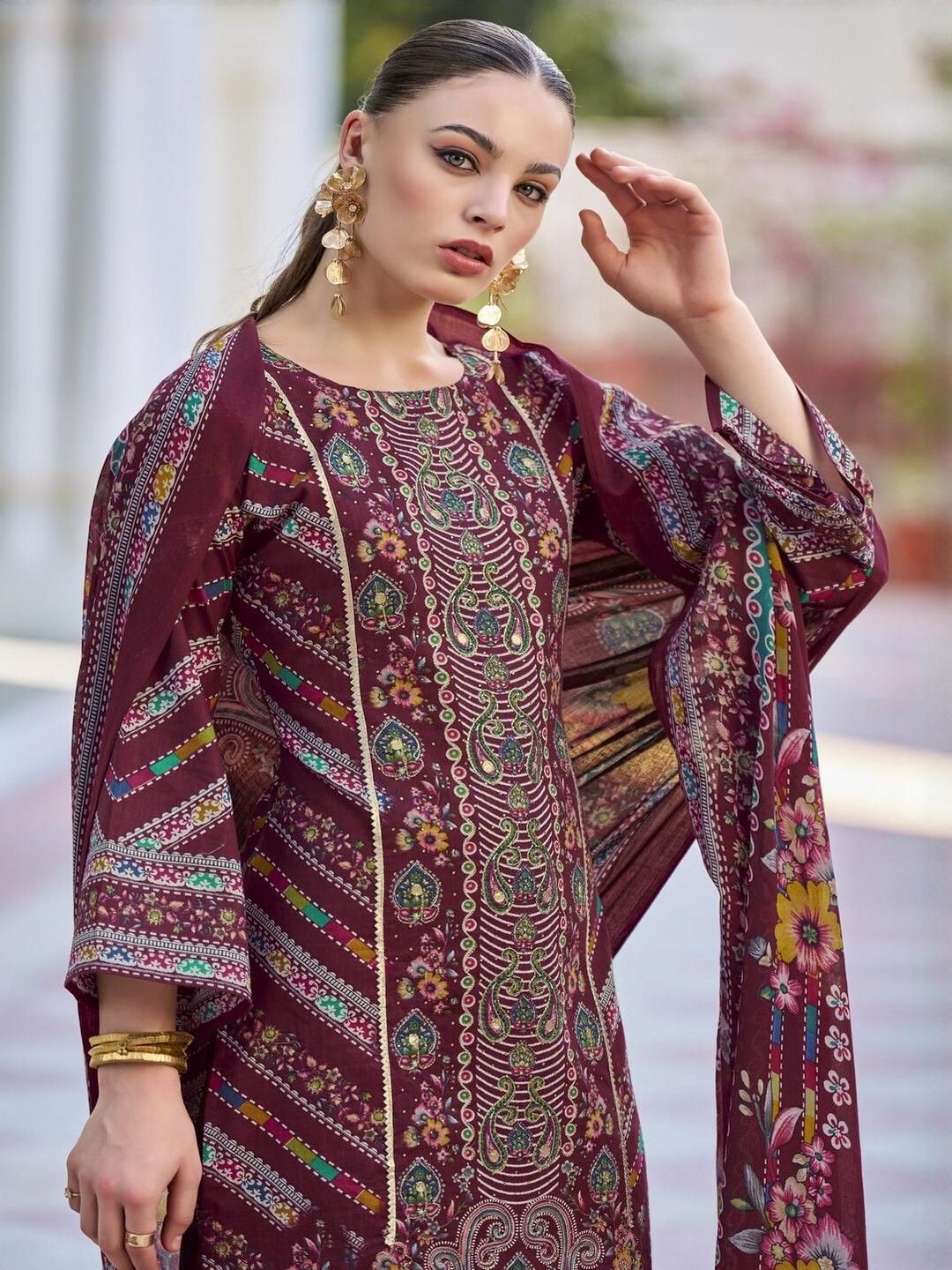 DRAVINAM Trends Embroidered Pure Cotton Unstitched Dress Material