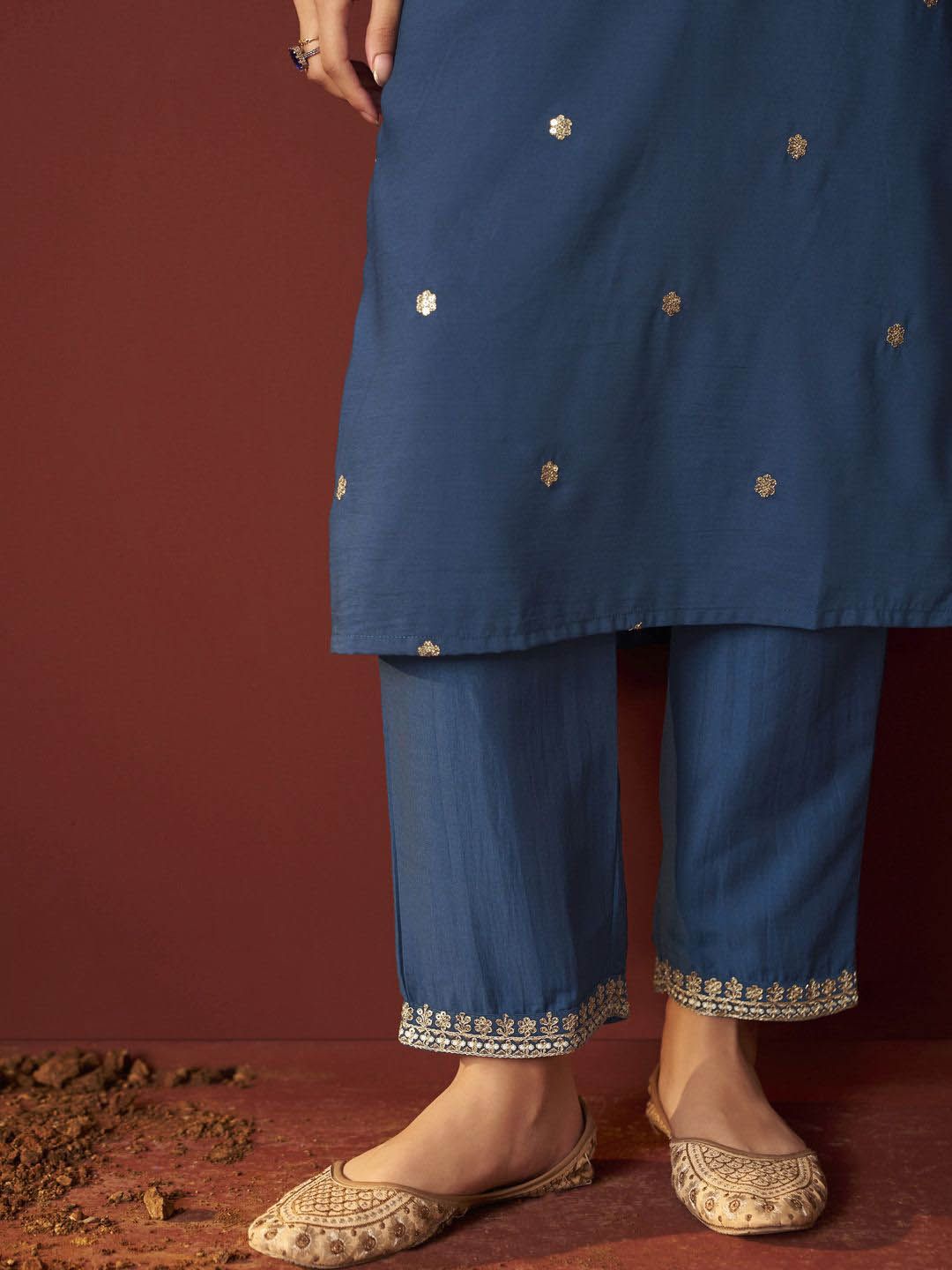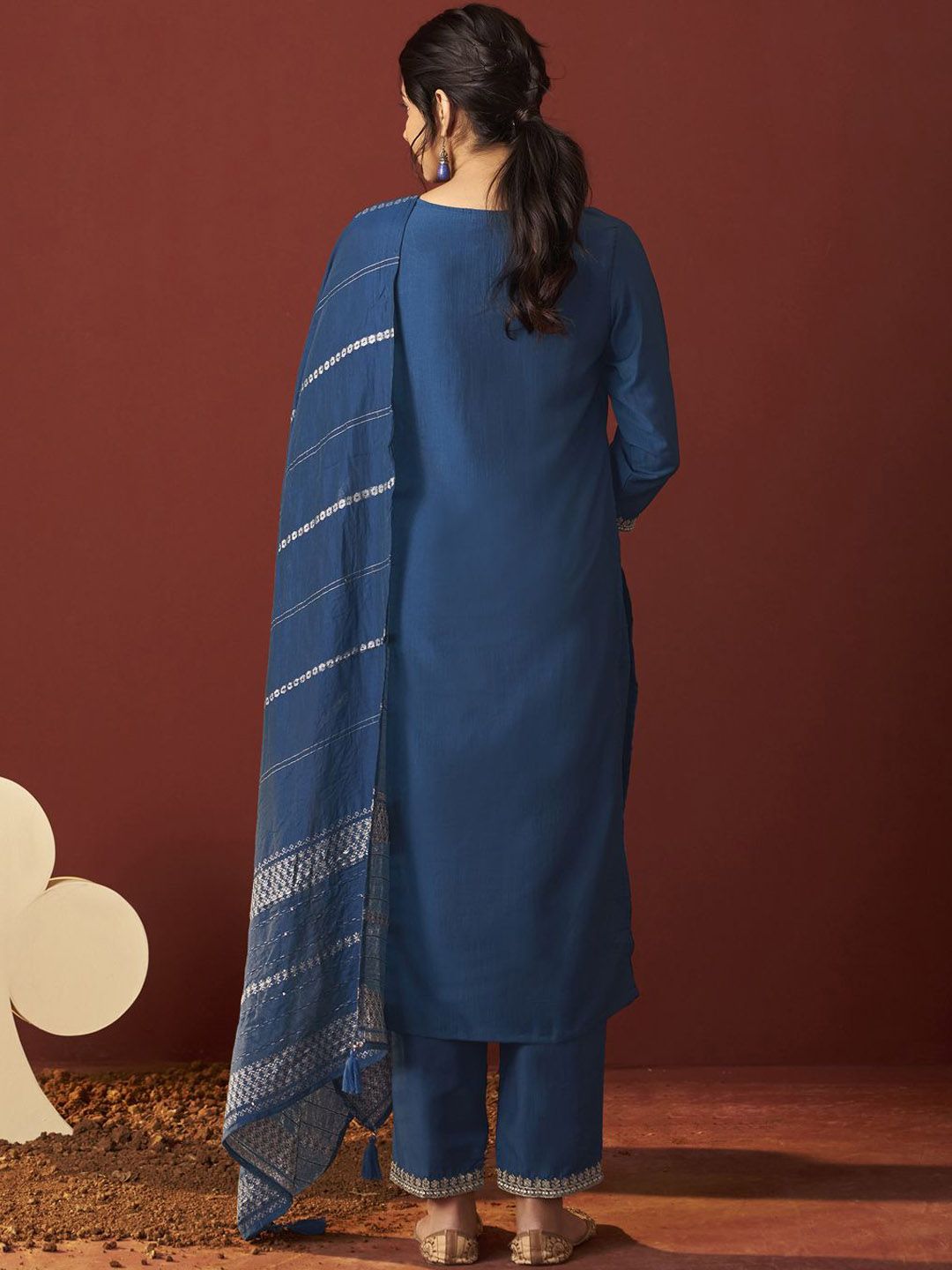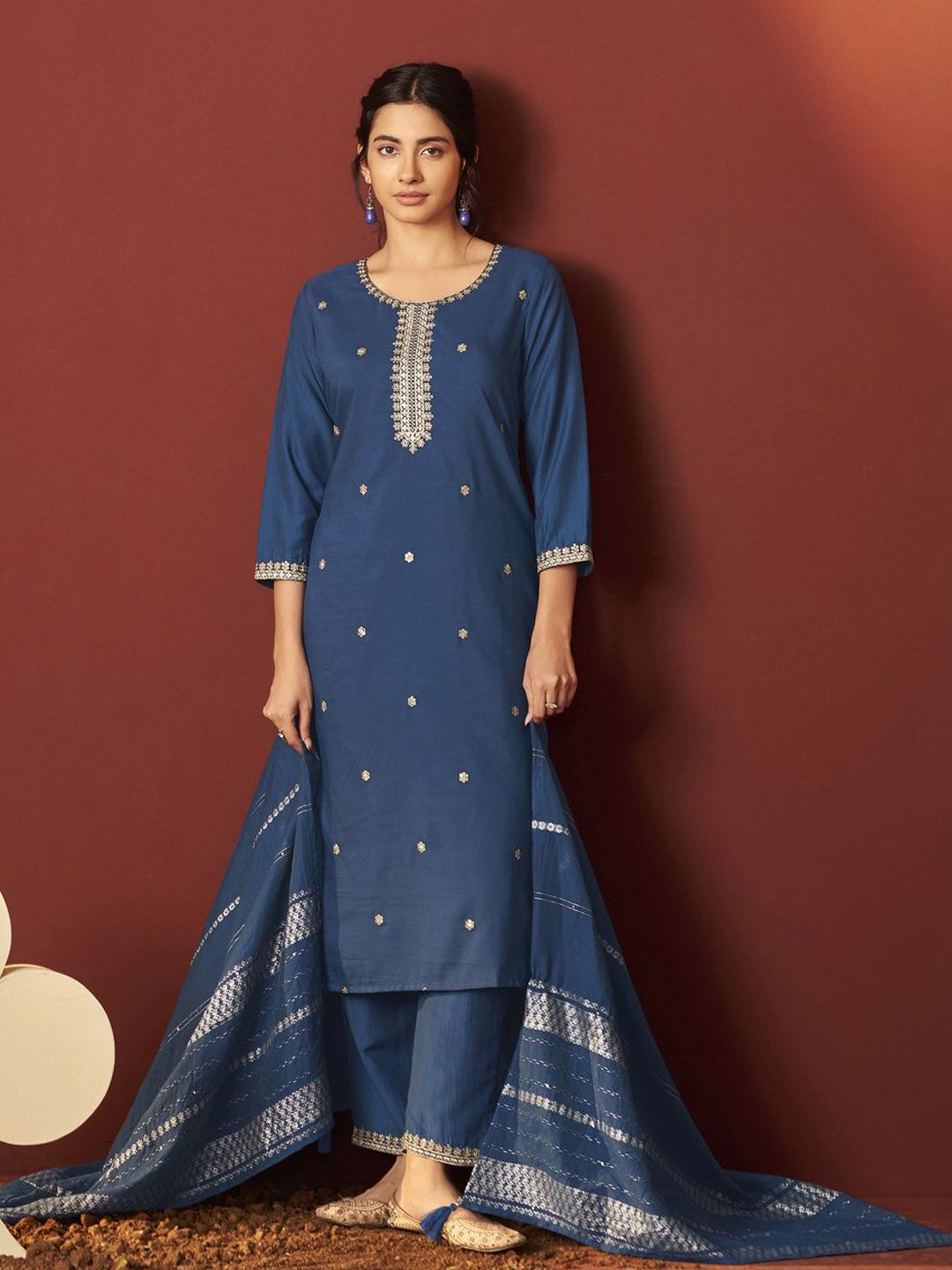 DRESOUL Women Ethnic Motifs Embroidered Thread Work Kurta with Trousers & With Dupatta