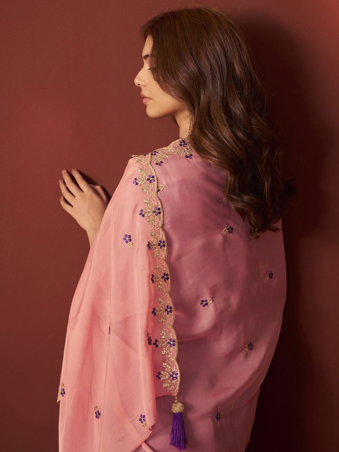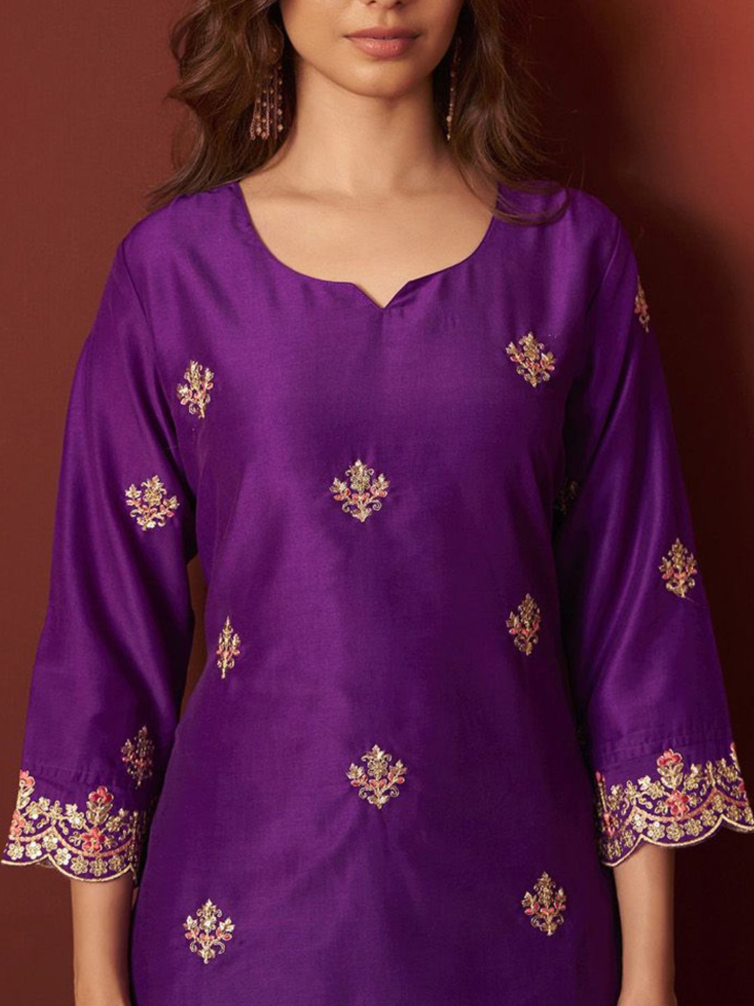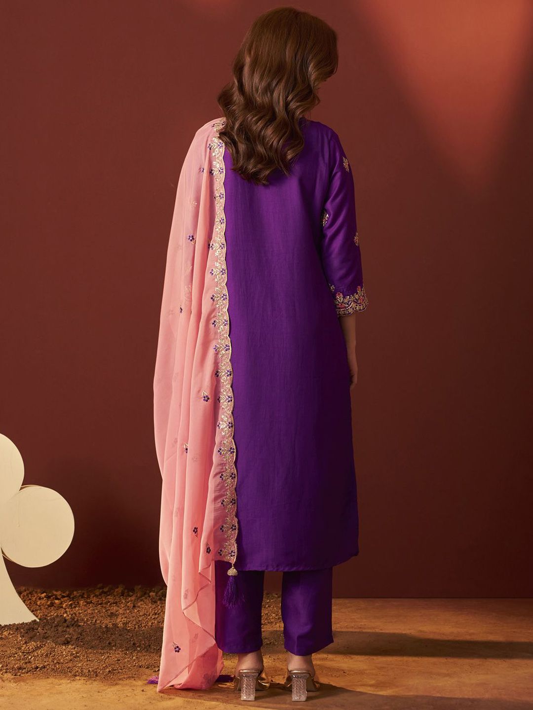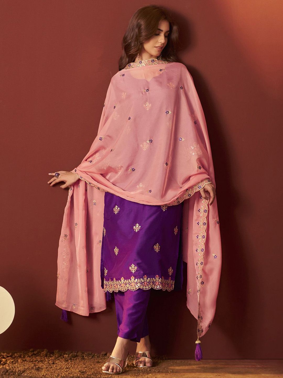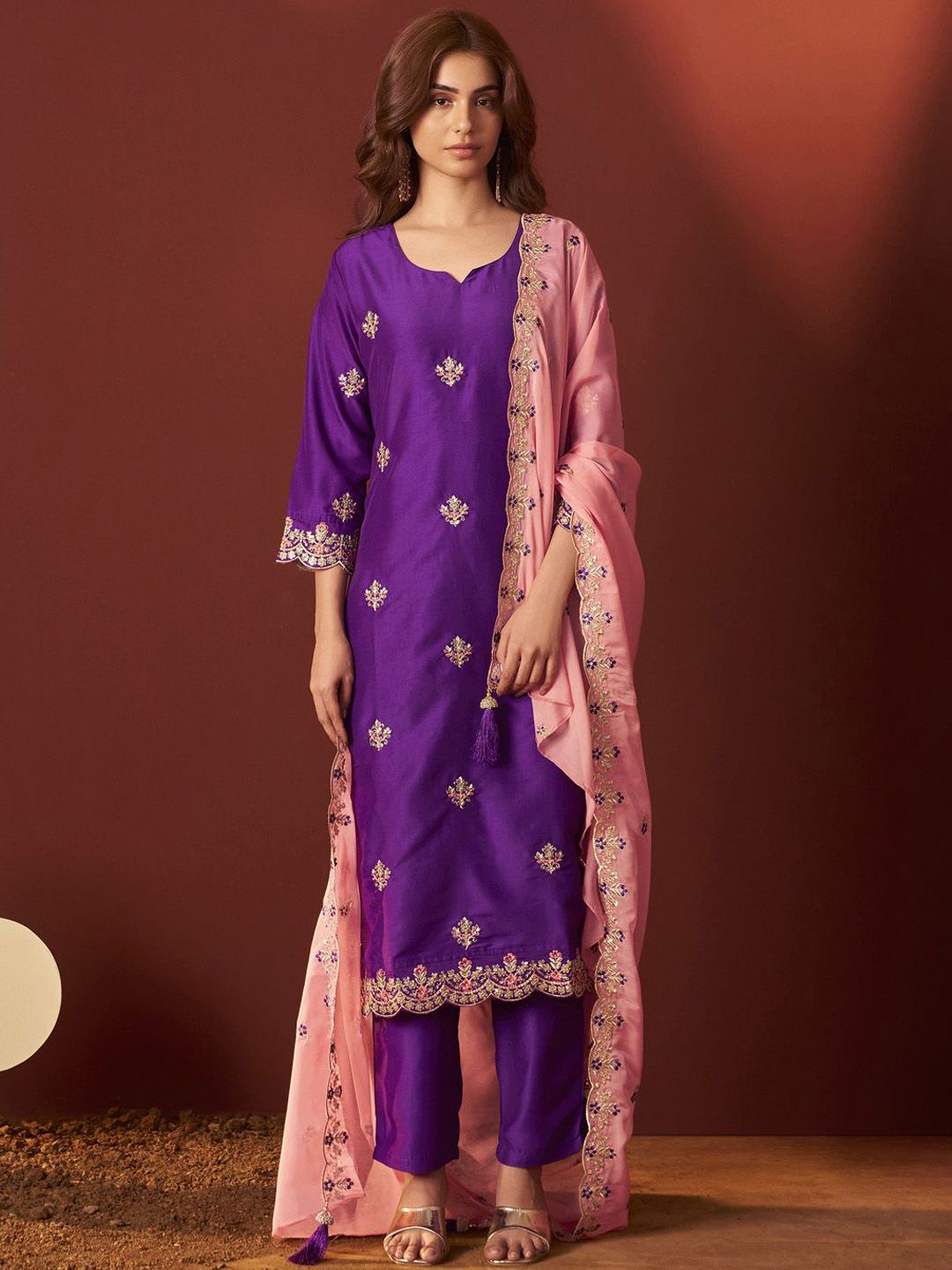 DRESOUL Women Ethnic Motifs Purple Chinnon Embroidered Kurta Set With Dupatta