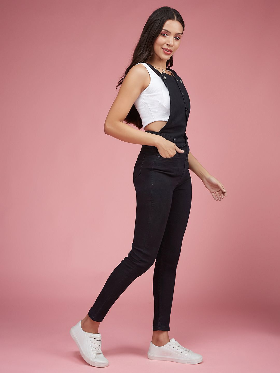 DressBerry Women Skinny High Rise Clean Look Stretchable Denim Dungarees