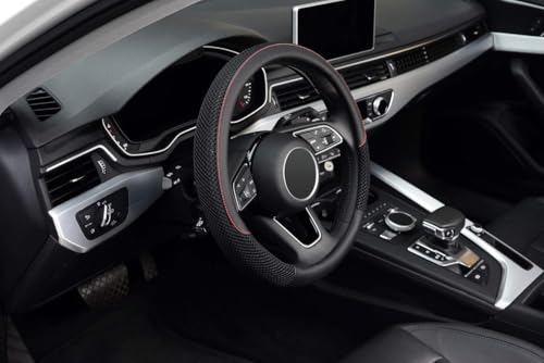 PERFECT DECOR FOR YOUR CAR- This stylish and luxurious looking Leather Steering Wheel wrap will instantly beautify your vehicle and add a stylish element to your driving space. EASY TO INSTALL- The steering wheel covers is made of malleable material, which is easy to install and can be replaced at will. This quality product is a great gift option for anyone around you, such as birthdays, Christmas or any other suitable occasion. MICROFIBER LEATHER- The car steering wheel cover is made of microfiber leather, which is durable and has a soft surface with good breathability and an inner lining with non-slip silicone material, bringing you a great driving experience. UNIVERSAL FIT- The 15 inch steering wheel covers suitable for all middle-size steering wheels with diameter 14 1/2 inch to 15 inch (37cm to 39cm). Soft steering wheel cover suit for 98% the car model size. EXCELLENT SEWING- Microfiber leather and precise thick thread close-stitching process, high temperature resistance and no odor, make the steering cover fit your car better and protect it from further wear and tear.