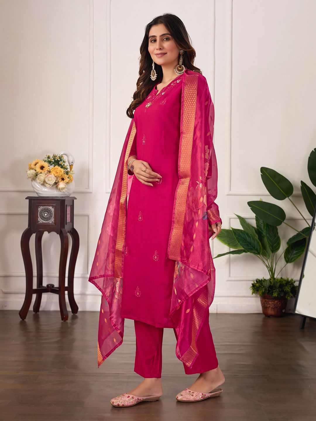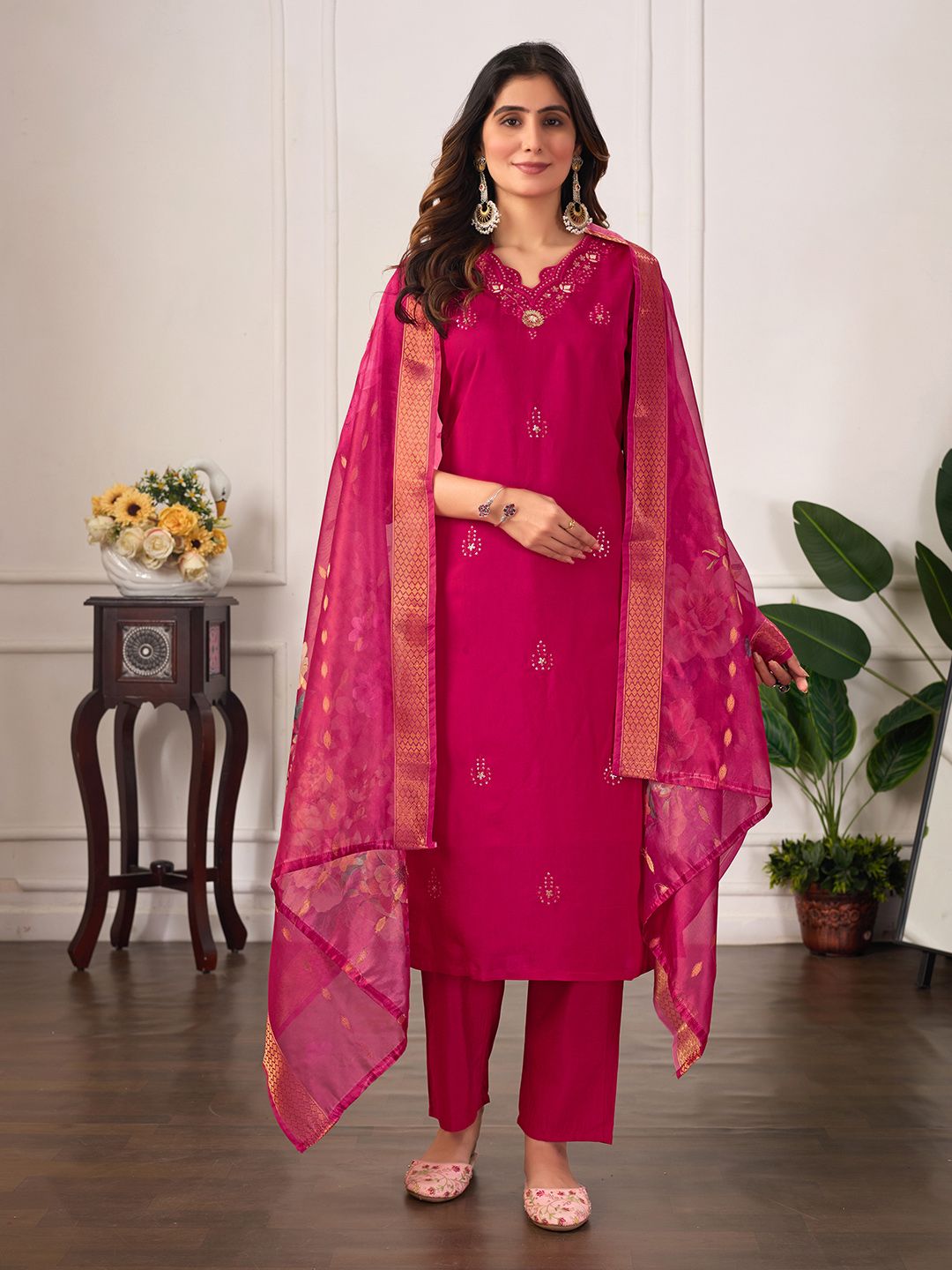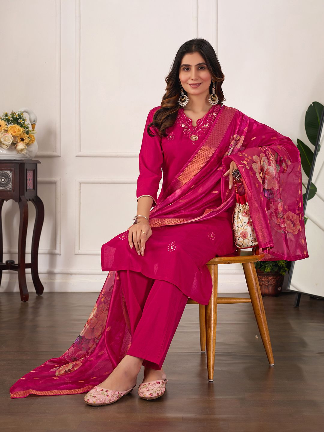 DRUPH & CO Women Floral Embroidered Kurta with Trousers & Dupatta