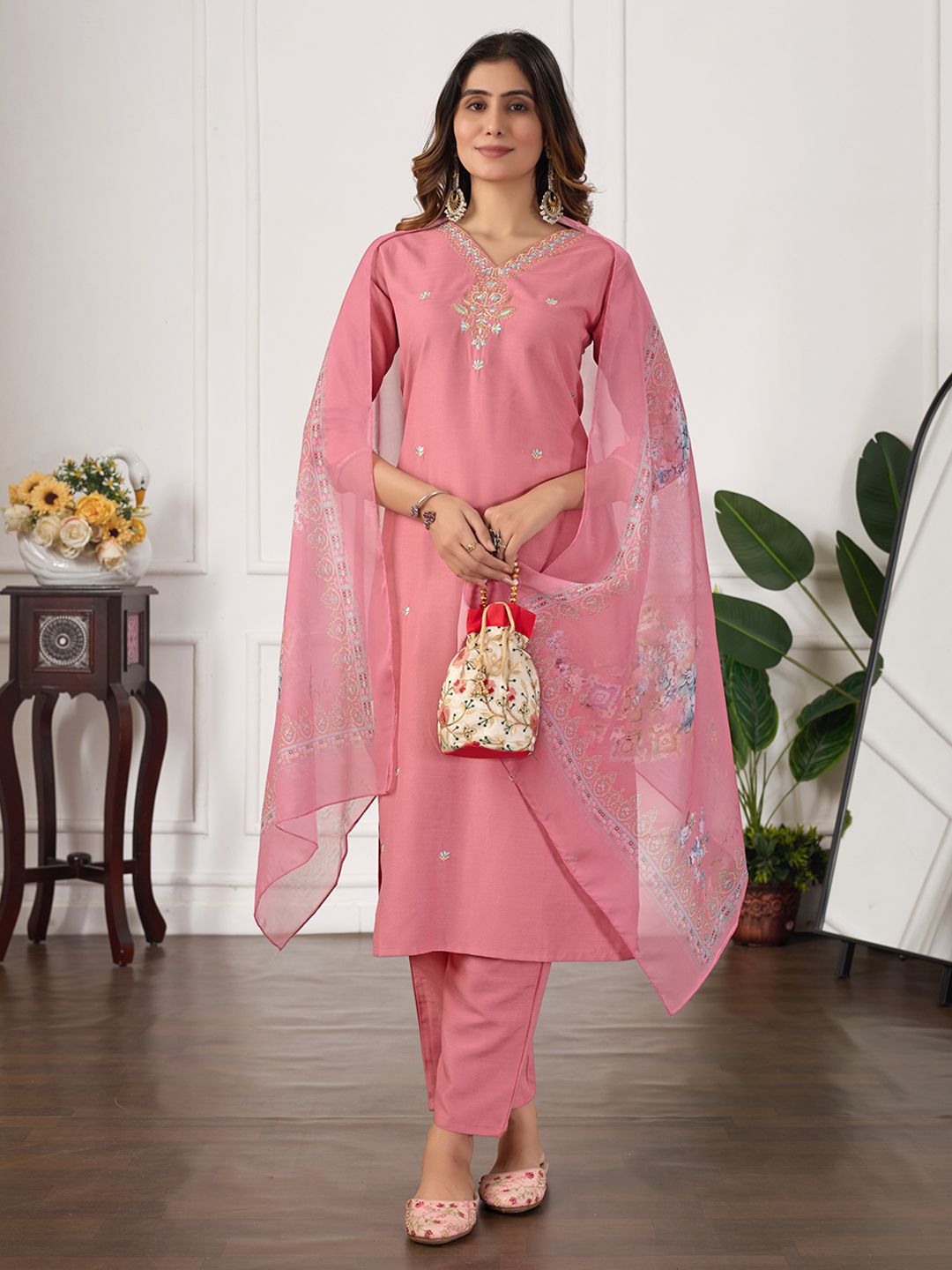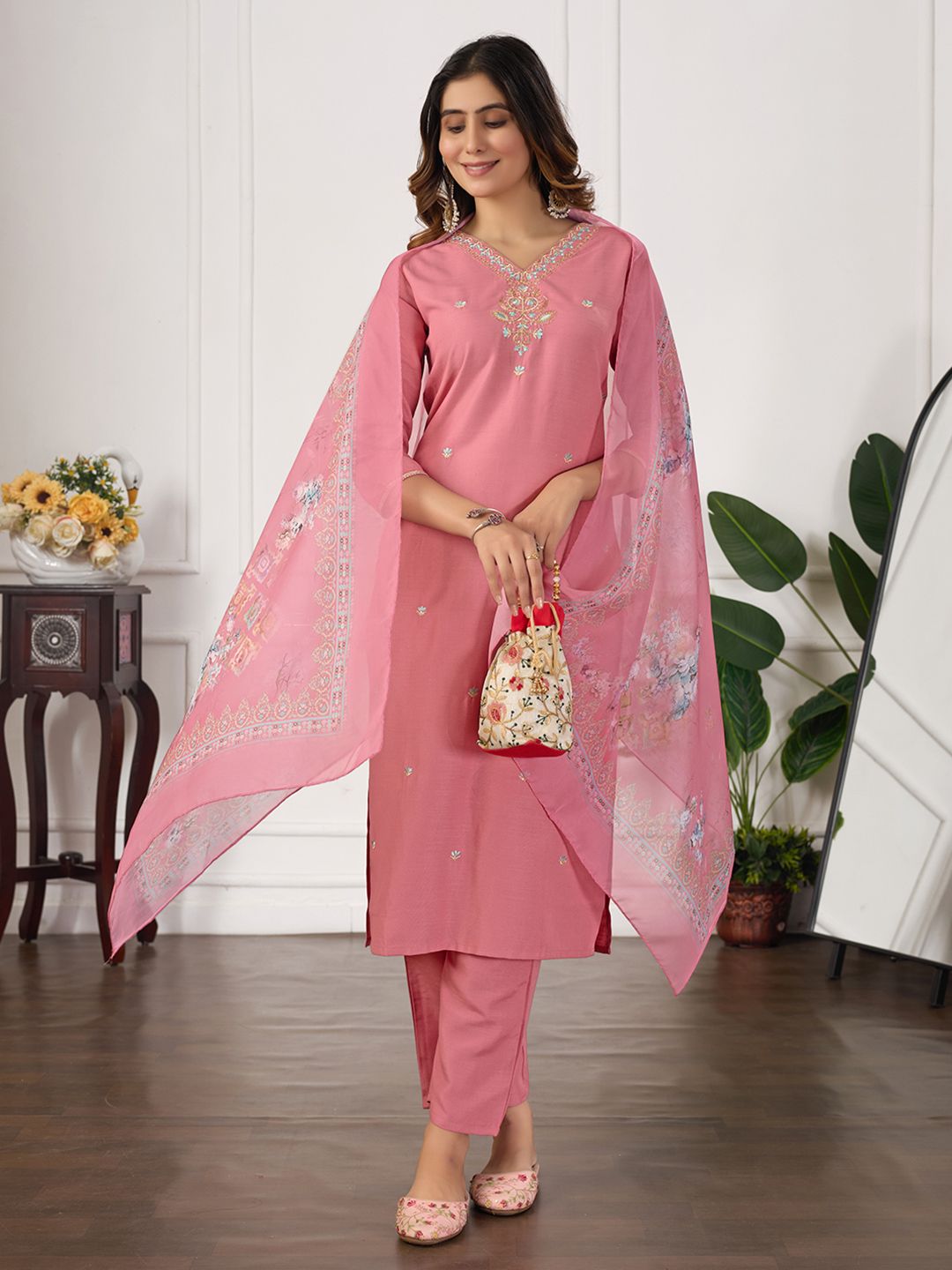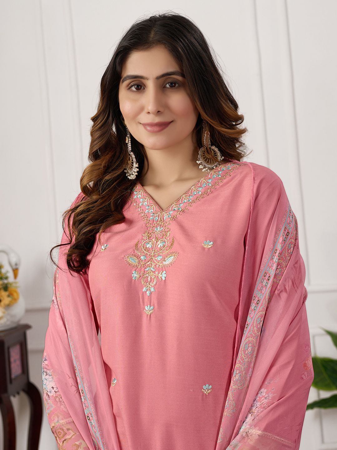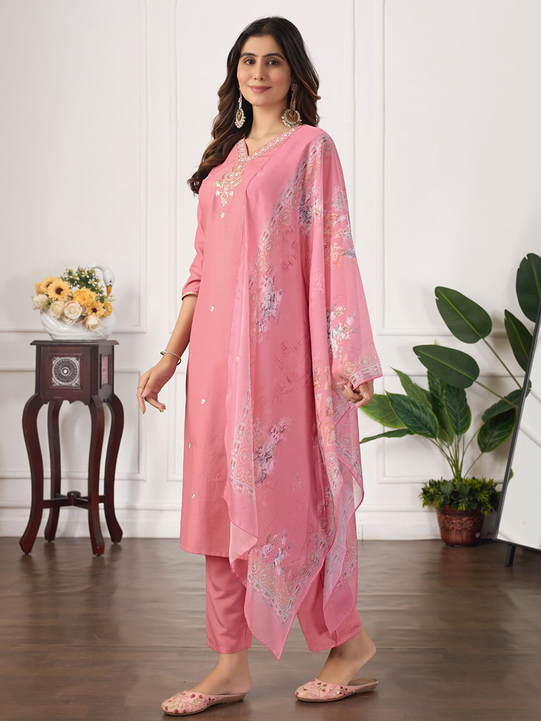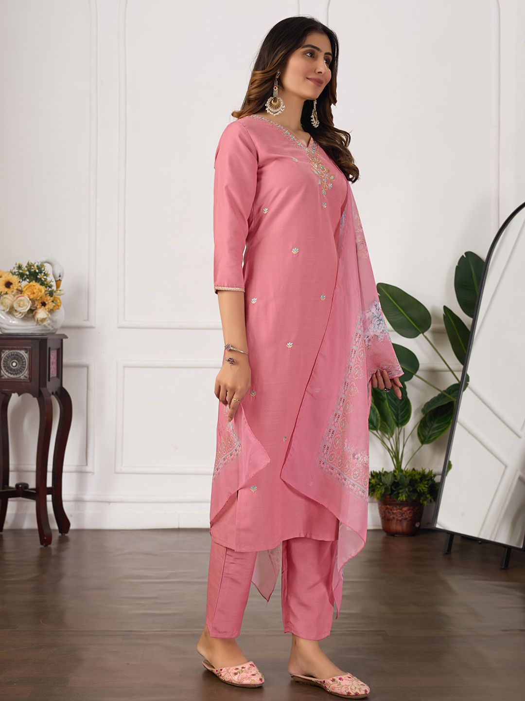 DRUPH & CO Women Floral Embroidered Kurta with Trousers & Dupatta
