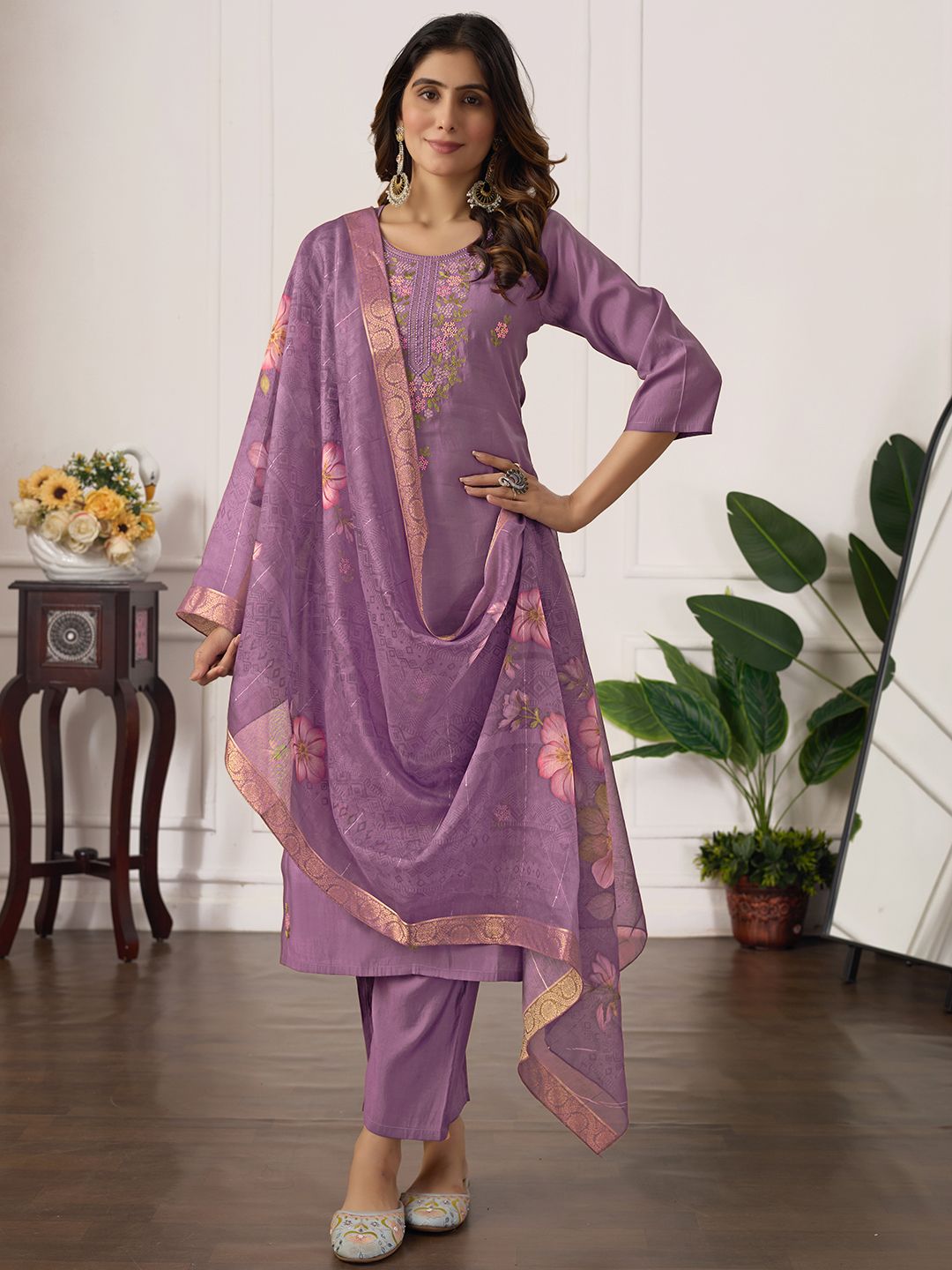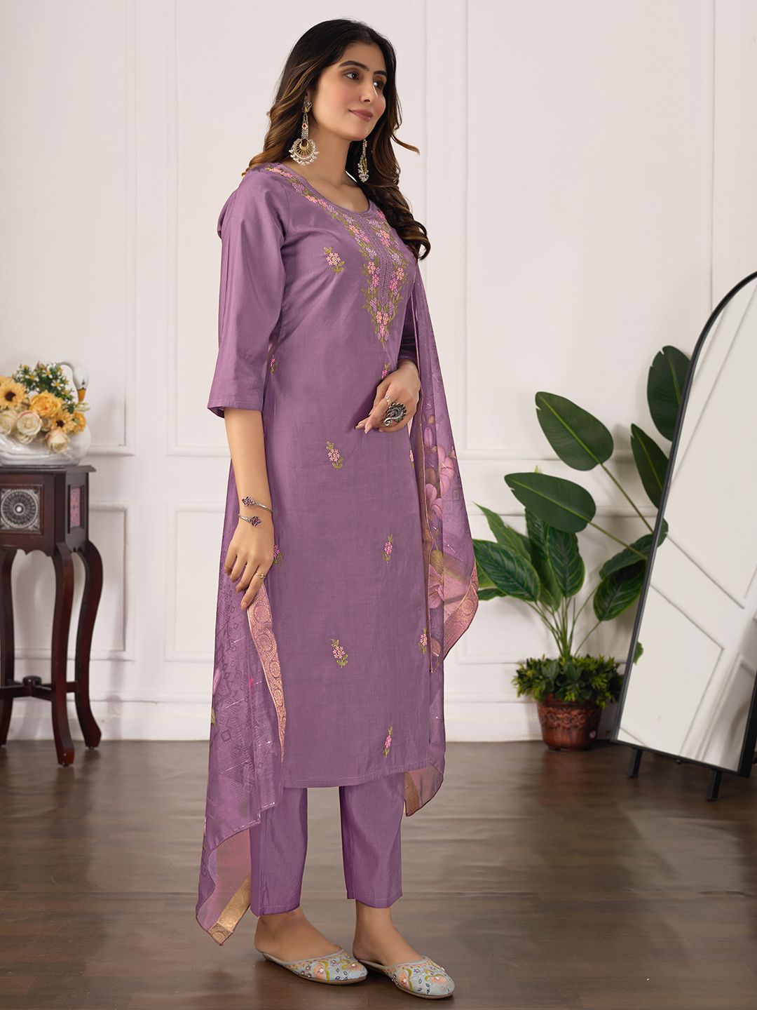 DRUPH & CO Women Floral Embroidered Sequinned Kurta Set With Dupatta