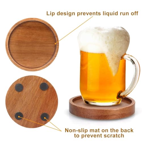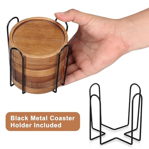 Duadecor 6 Pcs Best Wooden Coasters with Holder Coffee Table Decor Acacia Wood Coaster Set Modern Cup Coaster for Drink Home Dining Table Kitchen Accessories Cute Beer Bar Decorative Coasters