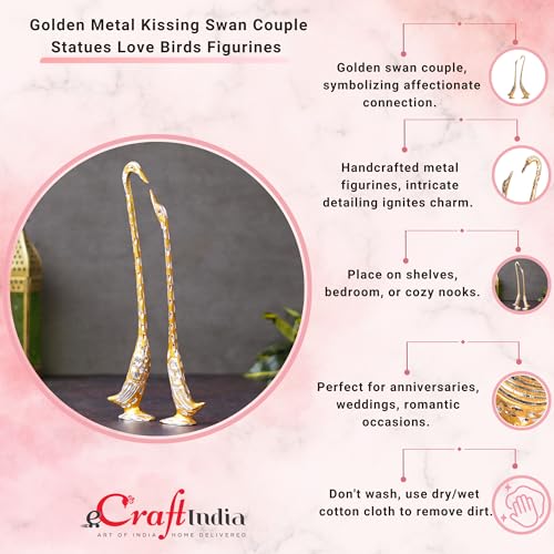 eCraftIndia Cute Love Birds Decorative Metal Figurine (15 cm x 5 cm x 33, Silver and Golden)