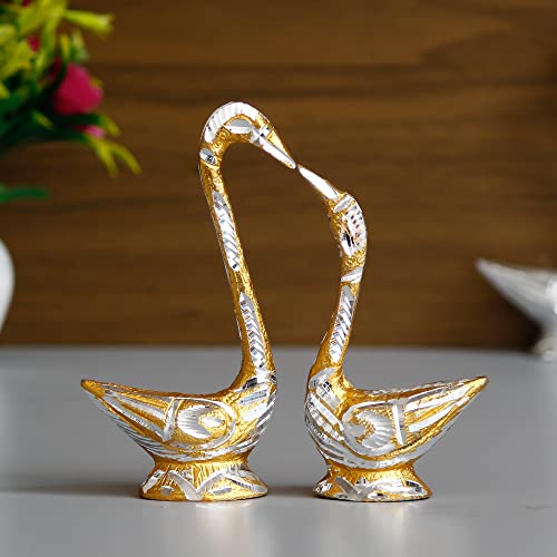 eCraftIndia Metal Handcrafted Loving Golden Swan Pair Showpiece Bird Figurine | Swan Showpiece for Home Decor Living Room Bedroom | Gift for Birthday Friendship Day Valentine's Day Anniversary