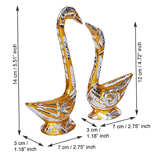 Product Size - 10.9Cm x 4.97Cm x 20.9Cm / 4.29 x 1.96 x 8.23 Material - Metal, Colour - Gold Package Content - One Loving Golden Swan Couple Metal Handcrafted Decorative Figurine Metal Handcrafted Loving Golden Swan Pair Showpiece, elegantly designed with intricate detailing, symbolizes love, grace, and harmony, making it a perfect addition to home decor, living rooms, and bedrooms A thoughtful gift for birthdays, Friendship Day, Valentine's Day, and anniversaries, this swan showpiece represents eternal love and companionship, ideal for couples and loved ones