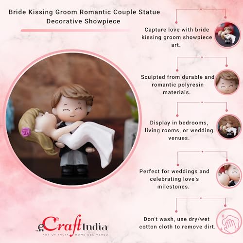 Product Size - 6Cm x 3Cm x 5.5Cm / 2.36 x 1.18 x 2.17 Material - Resin, Colour - White Package Content - One Bride Kissing Groom Romantic Polyresin Decorative Showpiece Add a touch of romance to your living space with eCraftIndia's decorative Bride Kissing Groom showpiece. This stunning home decor item is a perfect gift for Valentineâ€s Day, making it a standout piece among Valentineâ€s Day gifts and enhancing your room decor beautifully. Looking for the perfect wedding gift? Consider eCraftIndia's romantic Bride Kissing Groom showpiece for gift giving, perfect for elevating your decor and celebrating love on Valentine's Day.