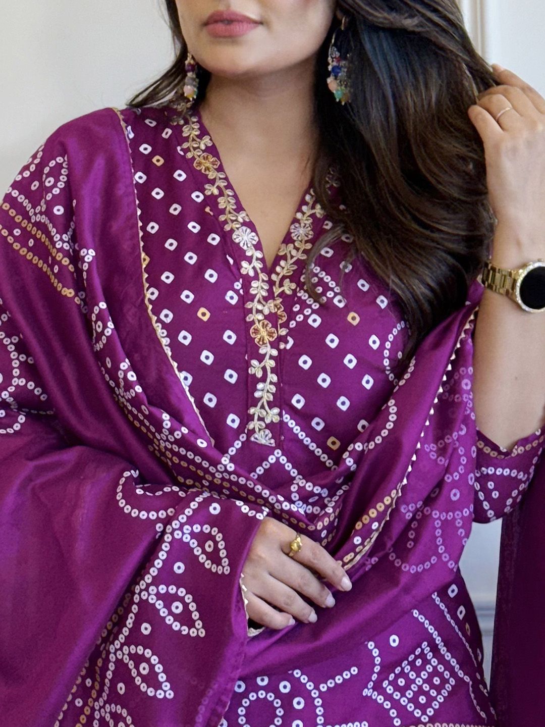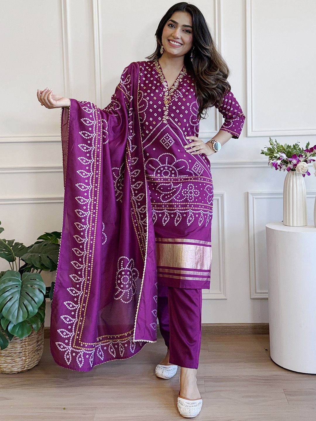 Ekta Textiles Bandhani Printed Chanderi Silk Straight Kurta With Pyjamas & Dupatta