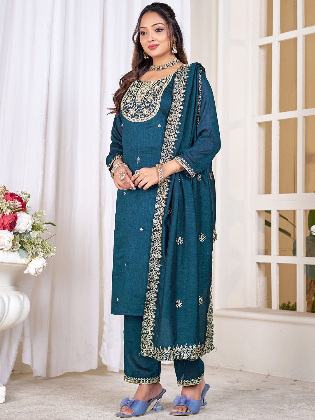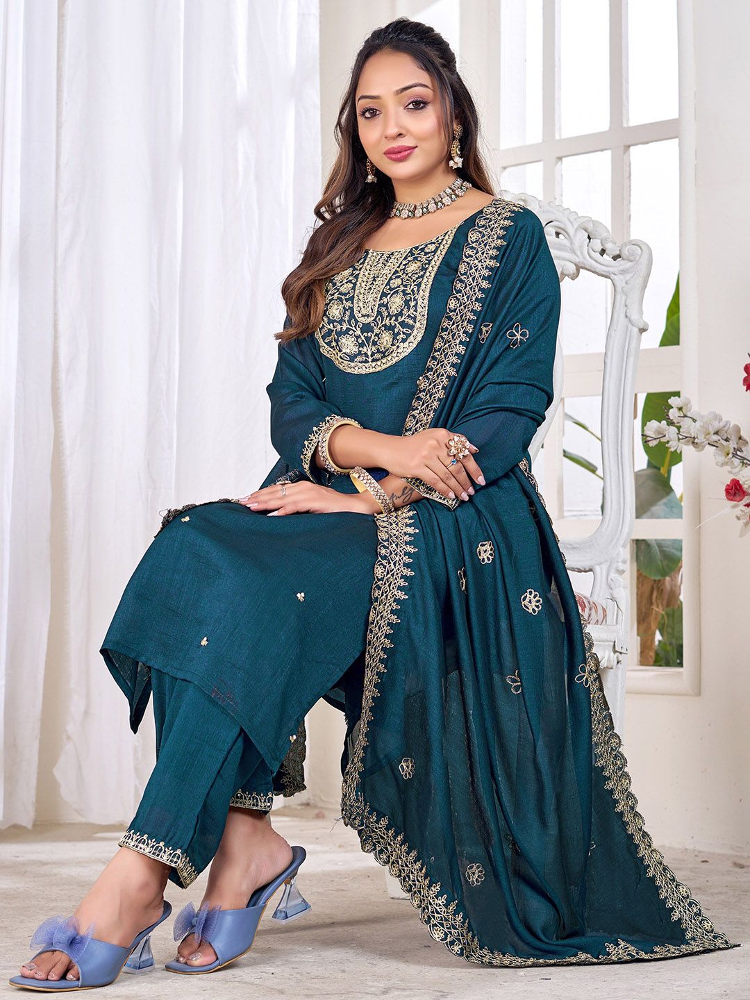 Ekta Textiles Women Ethnic Motifs Embroidered Kurta with Trousers & Dupatta