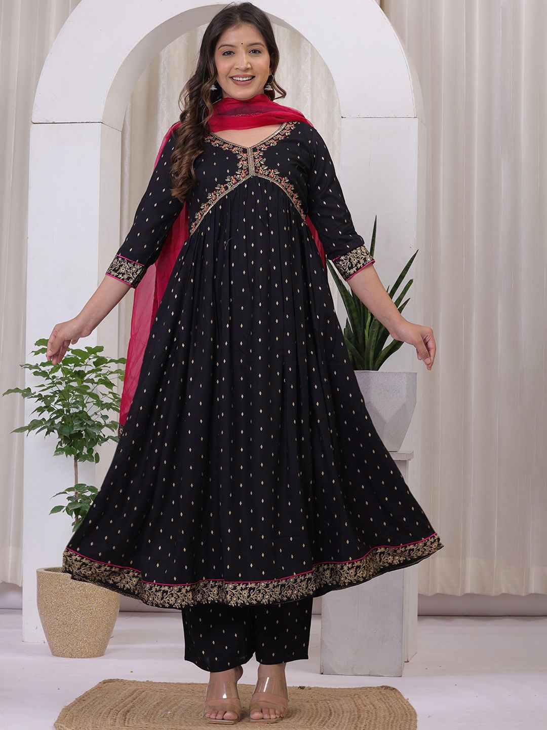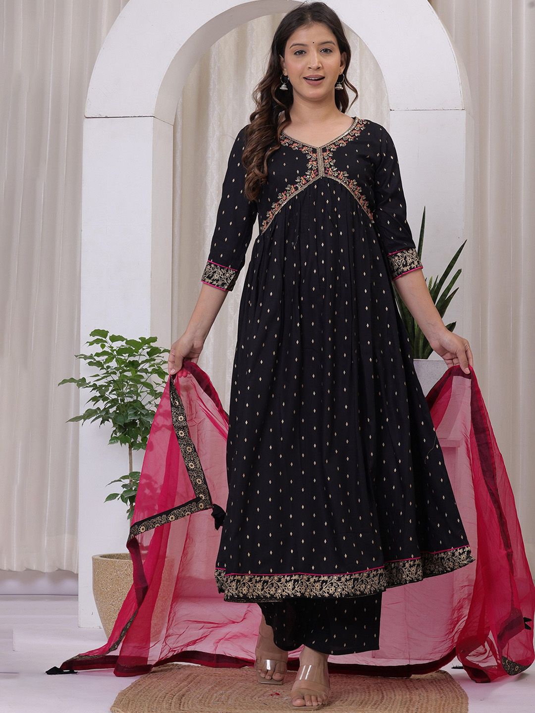 Elegant fashion Women Embroidered Regular Thread Work Kurta with Trousers & Dupatta