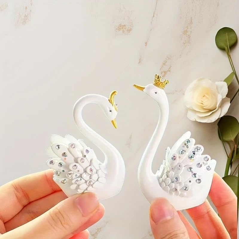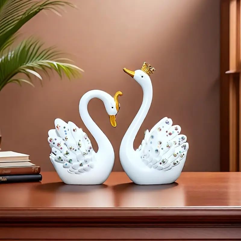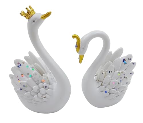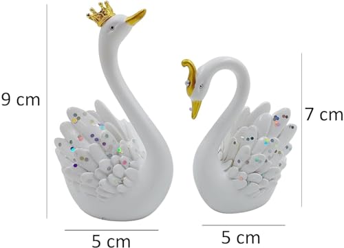 ELEGANT LIFESTYLE Swan Couple Figurines Love Birds for Home Decor, Romantic Anniversary, Birthday Gift-9cm(White-Gold-Multi)