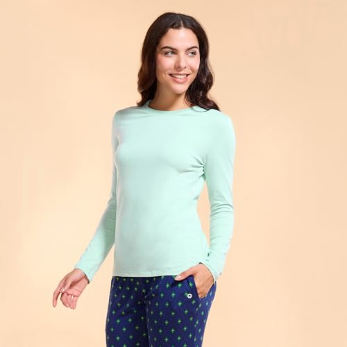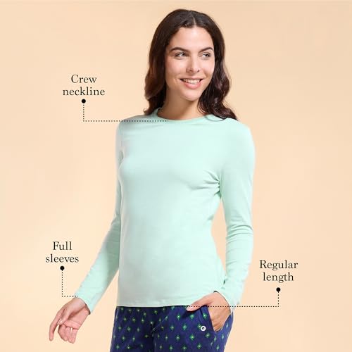 Enamor E057 Quick Dry 4 Way Stretch Antimicrobial Long Sleeve Basic Crew Neck Stretch Cotton Tee for Women