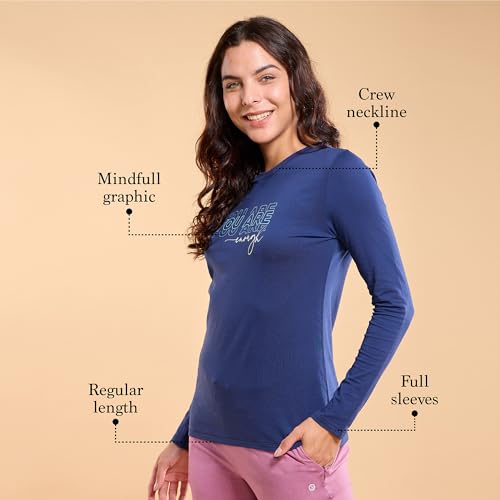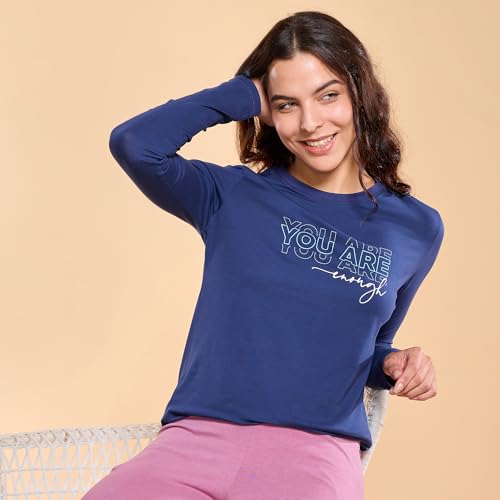 Enamor Essentials Full Sleeve Round Neck Slim Fit Stretch Cotton Lounge Tshirt for Womens-E157