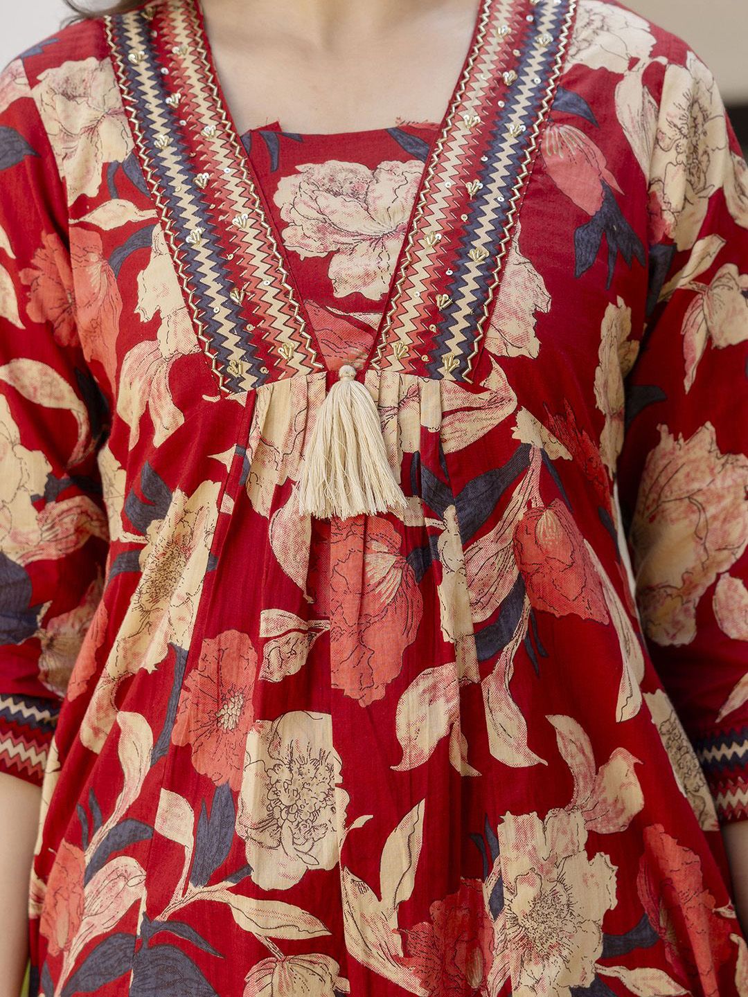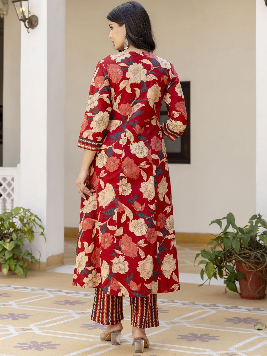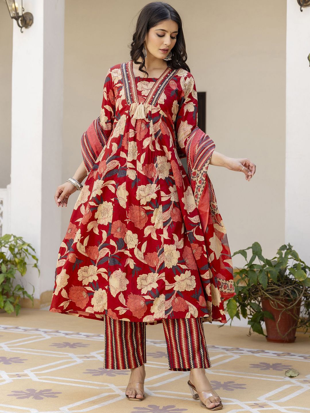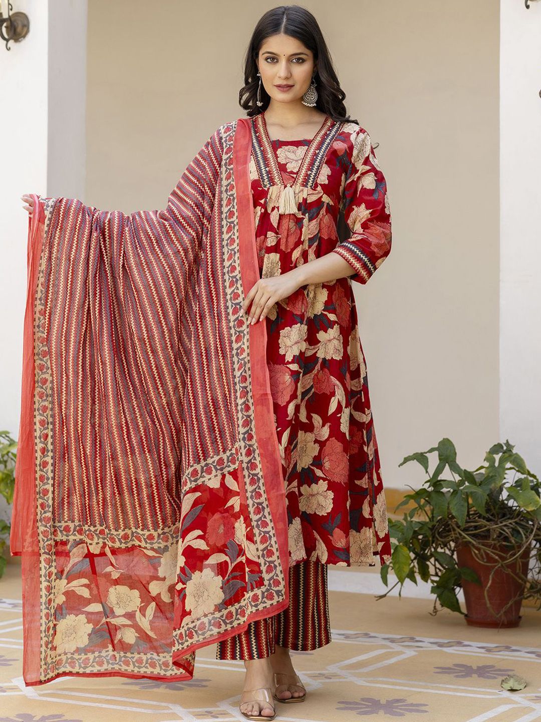 ERISHA Women Floral Printed Cotton A-Line Kurta with Palazzo & Dupatta