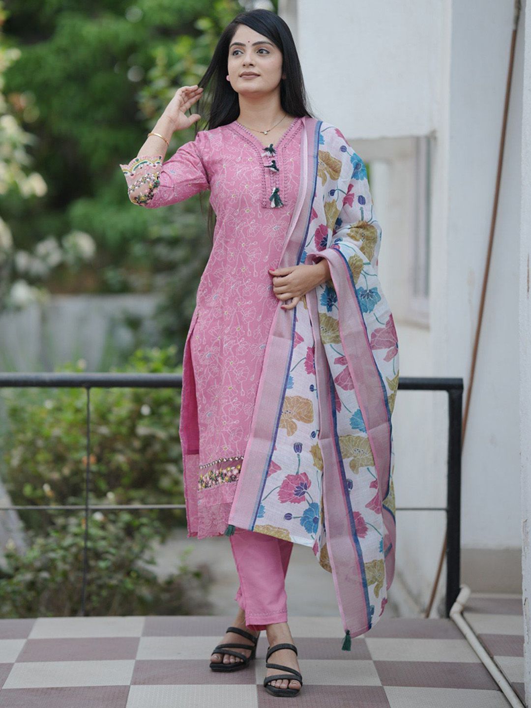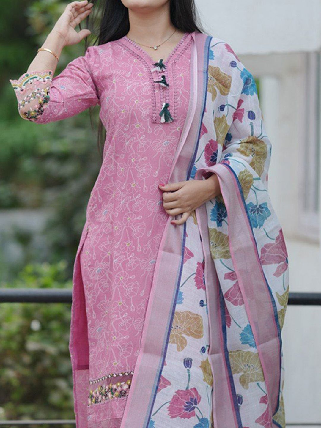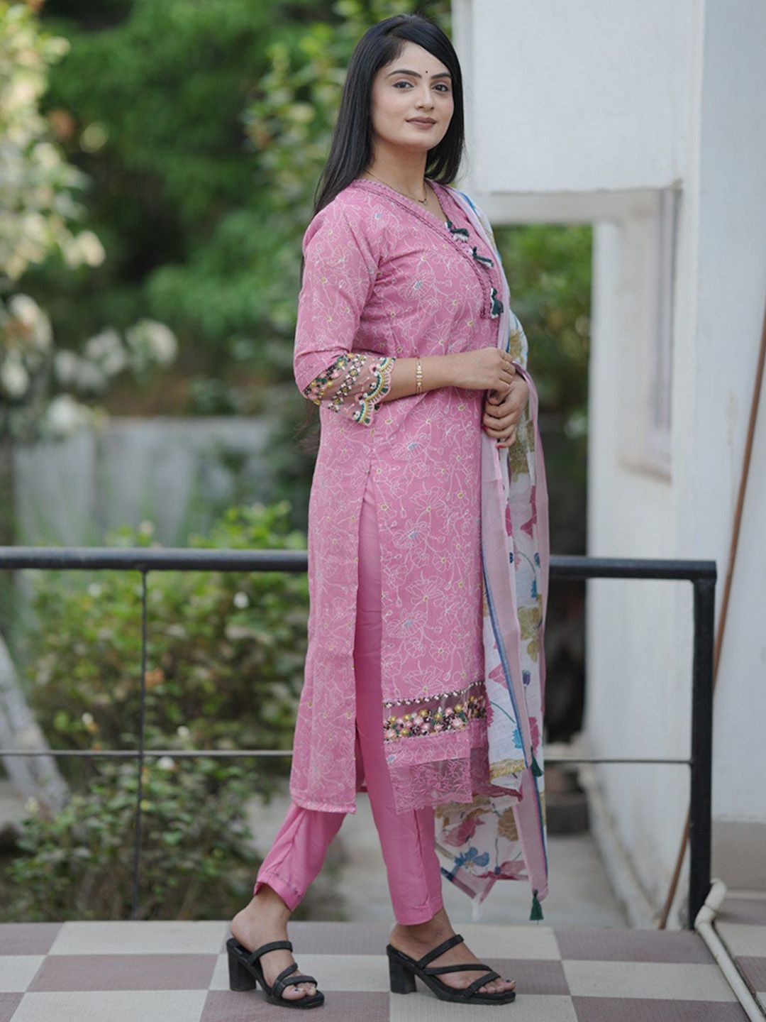 Ervaa fab Floral Printed Regular Pure Silk Kurta with Salwar & Dupatta