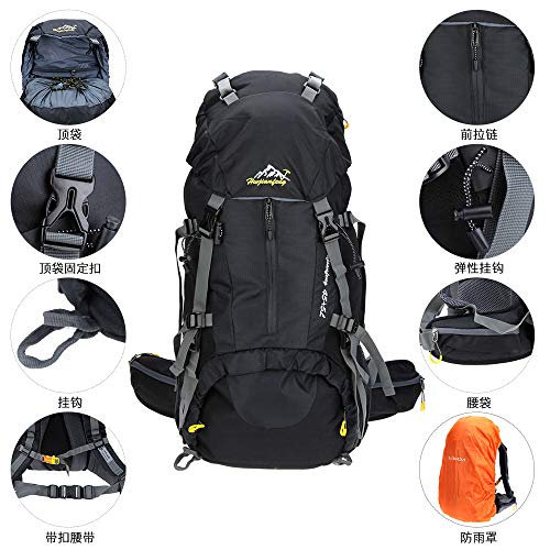 Eryue 50L Waterproof Outdoor Sport Hiking Trekking Camping Travel Ba pa Pa Mountaineering Climbing Knapsa with Rain Cover