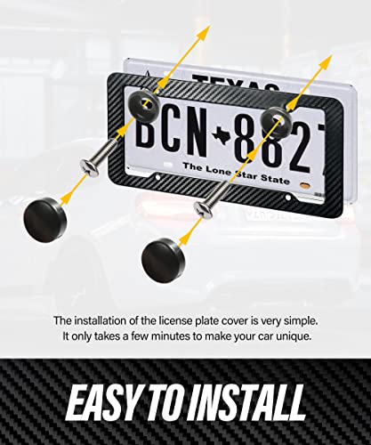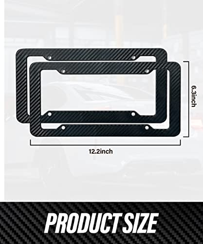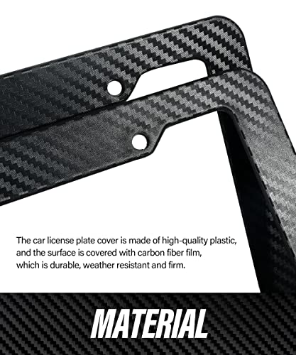[High Quality Car License Plate Cover] The license plate cover is made of high-quality materials and covered with real carbon fiber cloth on the surface. Washable, corrosion-resistant, rust resistant, and weather resistant. [Package Includes] The package includes 2 carbon fiber license plates, 8 screws, 8 nuts, and 8 washers. [Universal Size] The license plate frame size is "12.2" * "6.3" inches, suitable for most US and Canadian license plates. The four corners of the frame are very thin and will not obstruct the registration stickers on the four corners of the license plate. [Easy to Install] The license plate installation kit is easy to install. The two black license plate covers can be used to install the license plates for the front bumper and rear luggage compartment. The matching bolts can stably fix the license plate without falling off. [Perfect Decoration] Carbon fiber license plate cover can protect the license plate from rust and perfectly decorate your car or license plate.