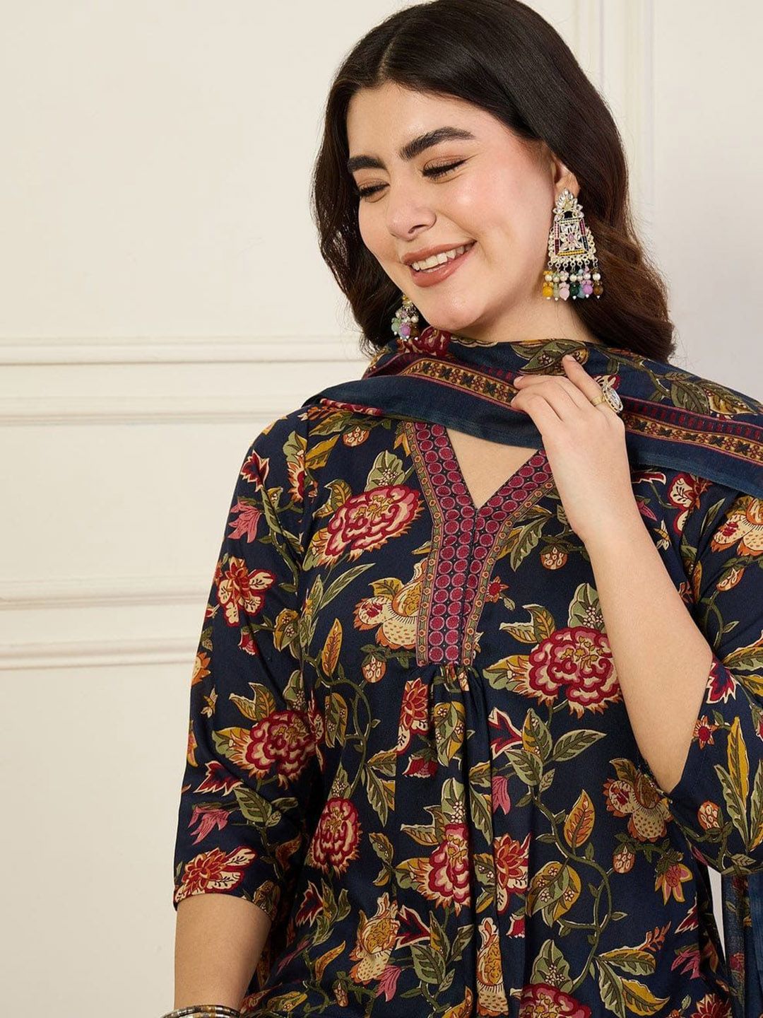 Buy this stylish Ethnic 3 You Floral Printed Regular V-Neck Pure Cotton A-Line Kurta With Trouser & Dupatta at Marincart Nepal. This product offers great quality and value. Perfect for those looking for the latest trends in fashion. Get yours now at unbeatable prices.