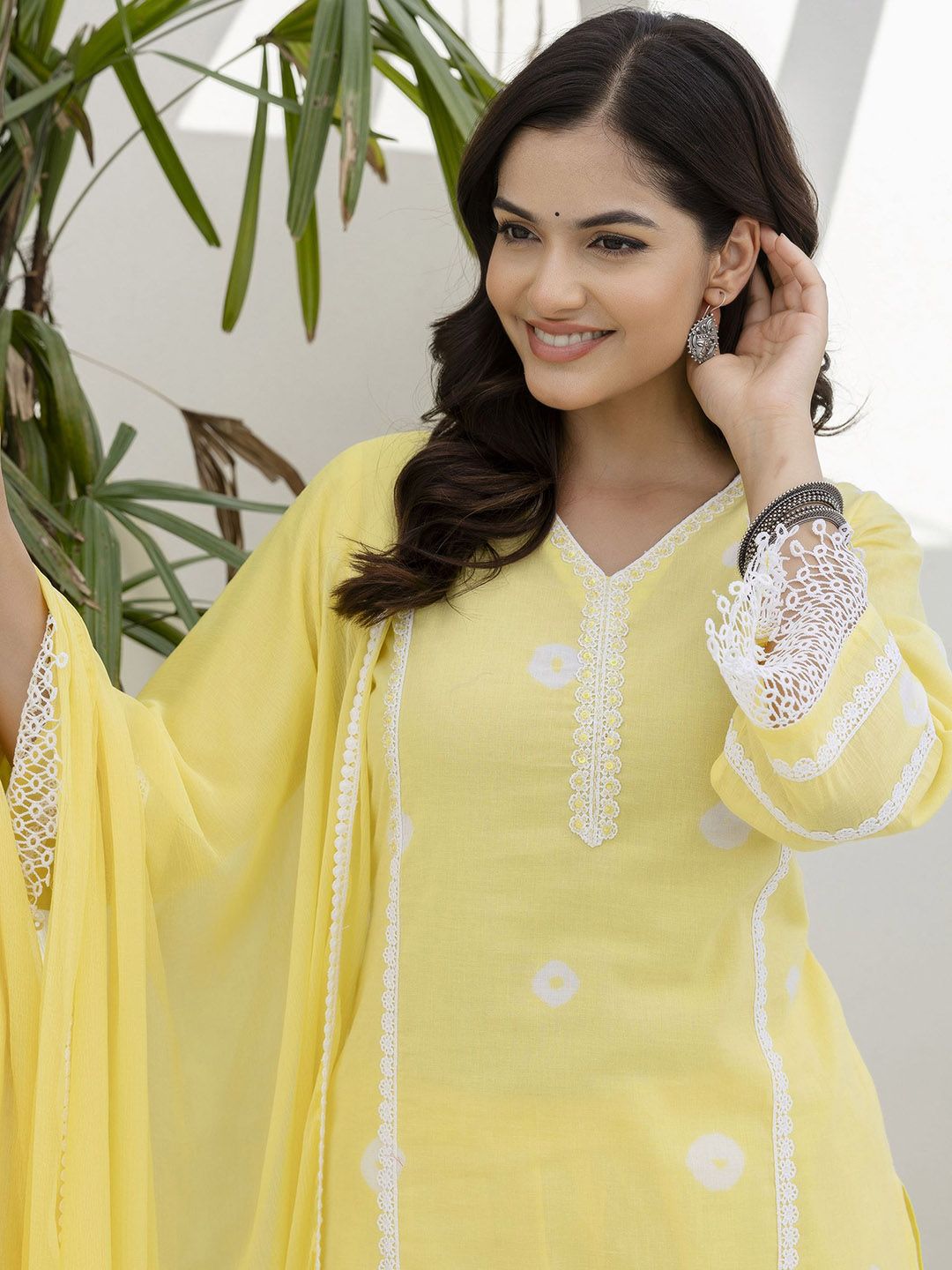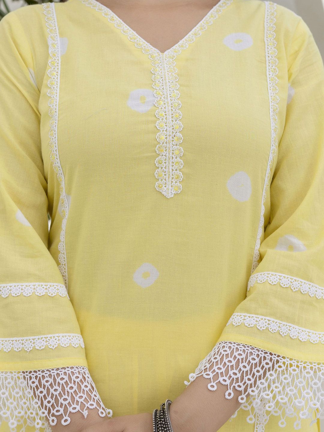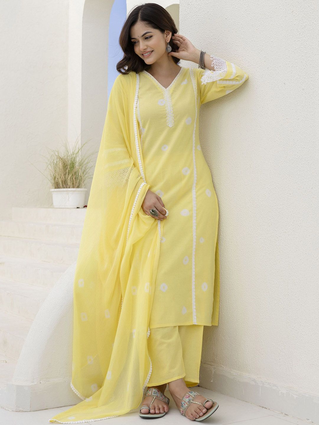 EthniFlair Women Bandhani Printed Cotton Kurta with Trousers & Dupatta