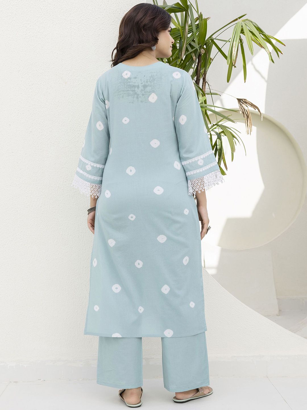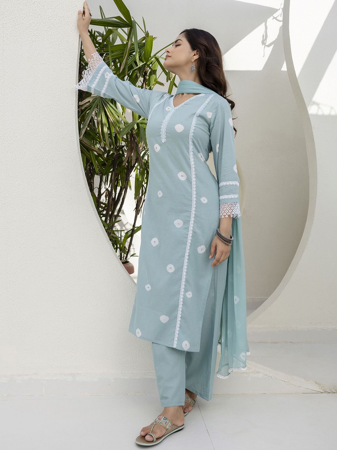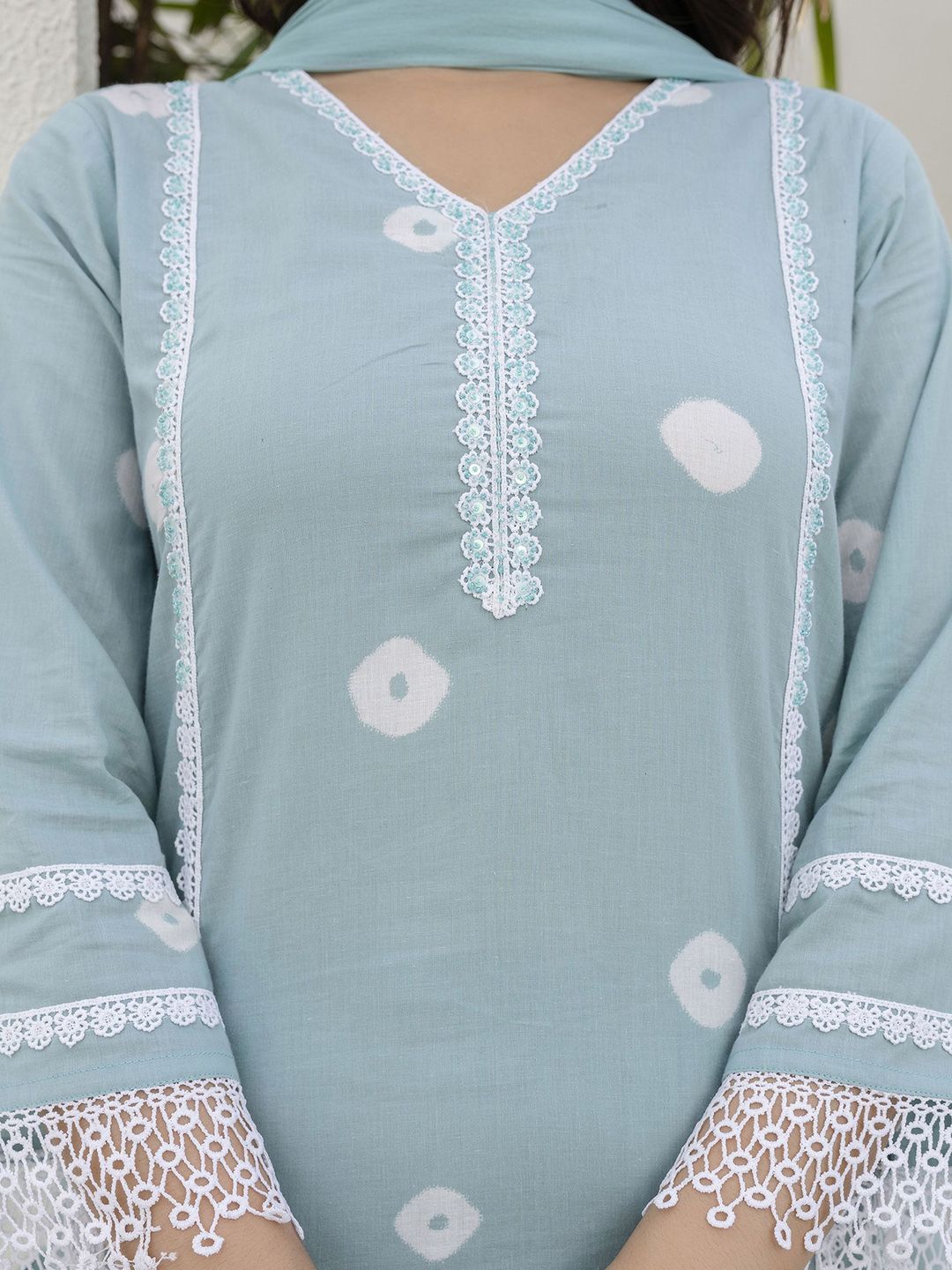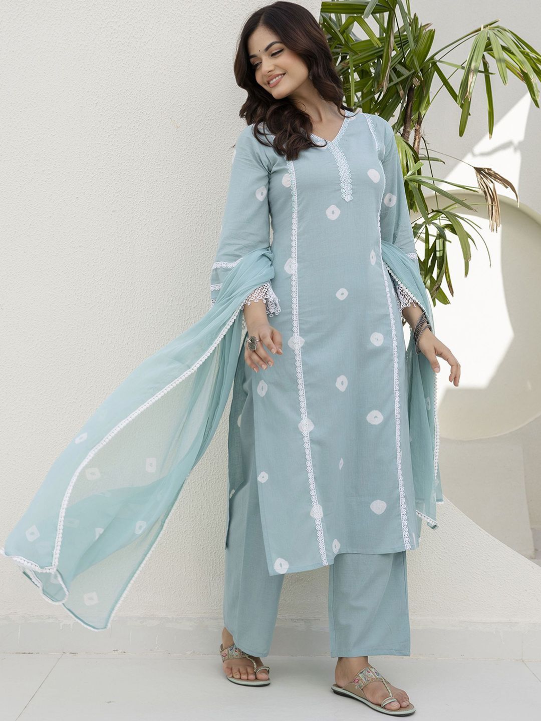 EthniFlair Women Bandhani Yoke Design Cotton Kurta with Trousers & Dupatta