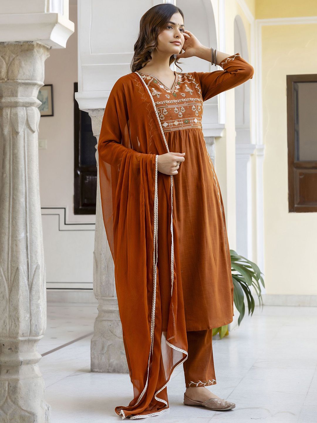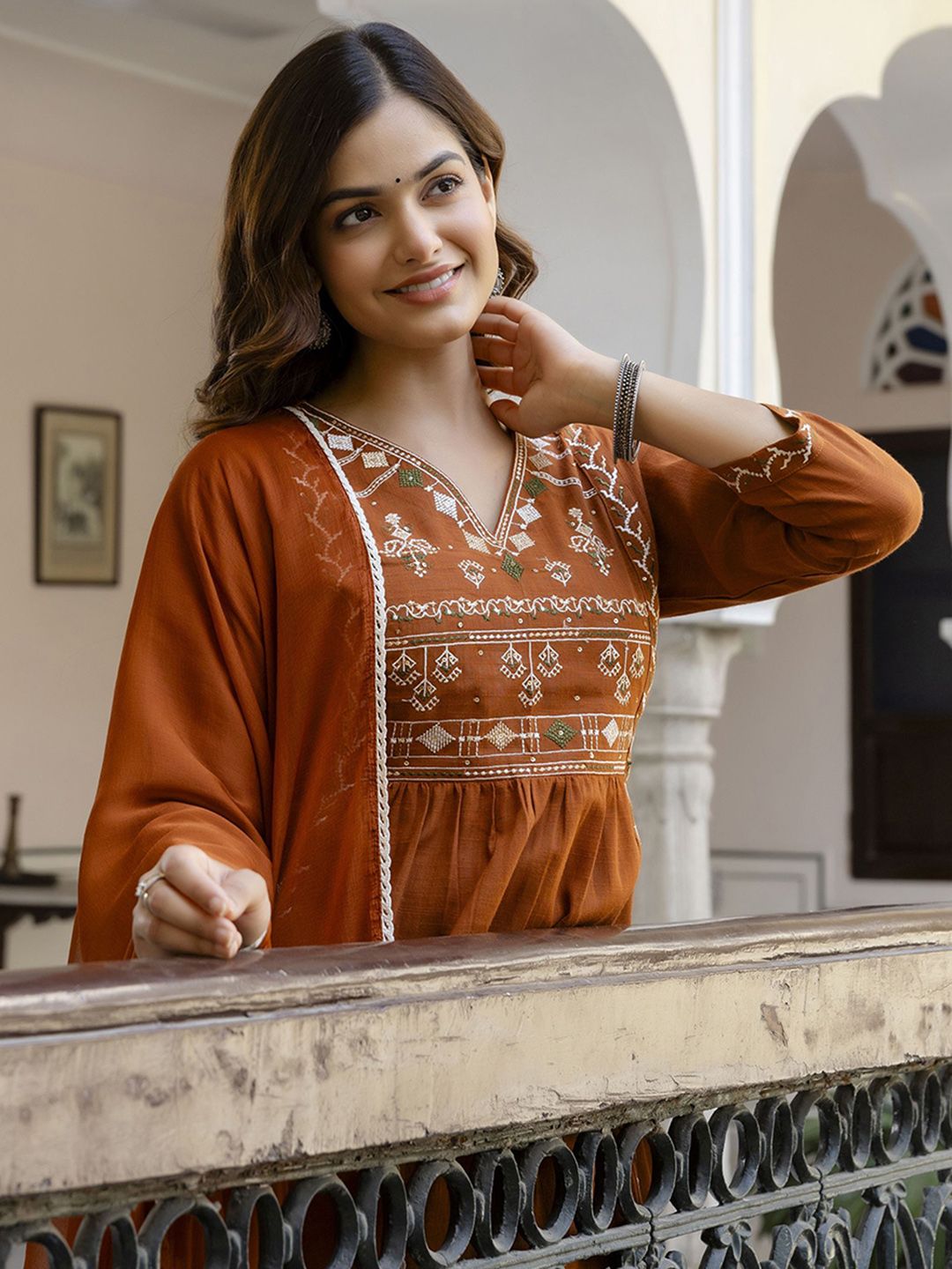 Buy this stylish EthniFlair Women Ethnic Motifs Embroidered Pleated Aari Work Pure Cotton Kurta Set at Marincart Nepal. This product offers great quality and value. Perfect for those looking for the latest trends in fashion. Get yours now at unbeatable prices.