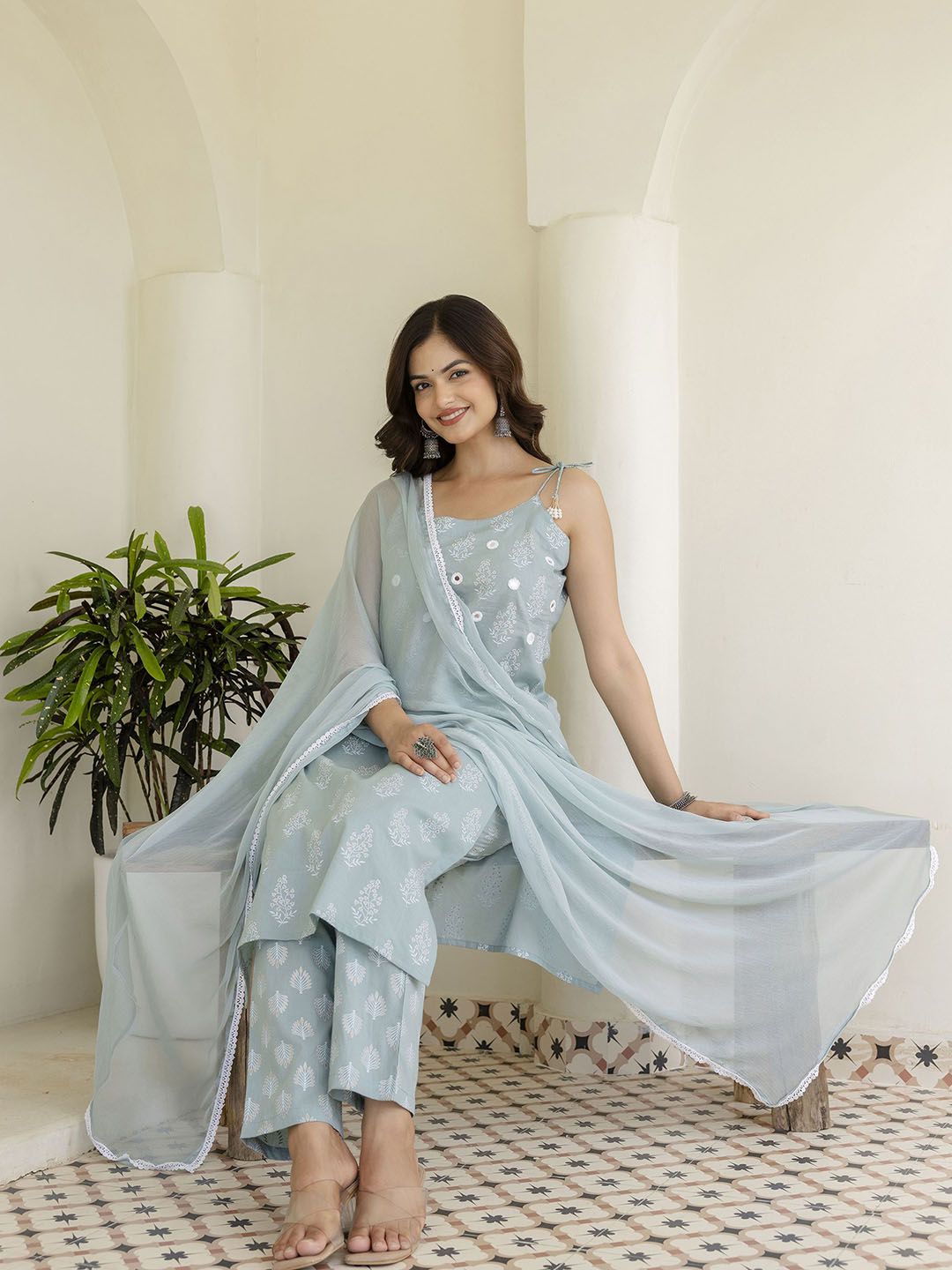 EthniFlair Women Ethnic Motifs Printed Pure Cotton Kurta with Trousers & Dupatta