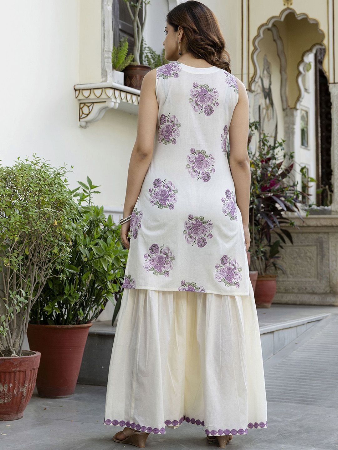 EthniFlair Women Floral Embroidered Aari Work Pure Cotton Kurta with Sharara & Dupatta