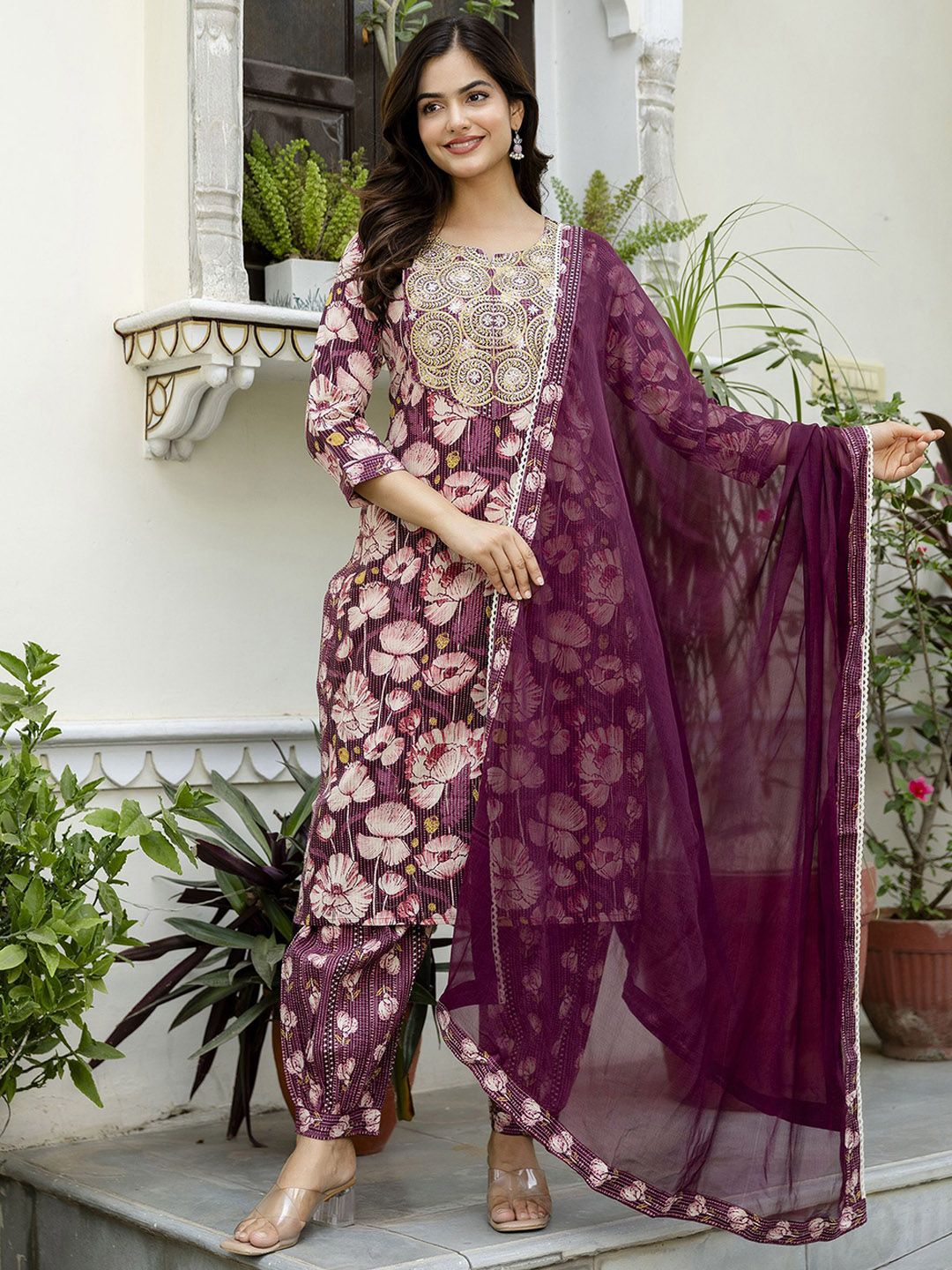 Buy this stylish EthniFlair Women Floral Embroidered Empire Aari Work Kurta with Patiala & With Dupatta at Marincart Nepal. This product offers great quality and value. Perfect for those looking for the latest trends in fashion. Get yours now at unbeatable prices.