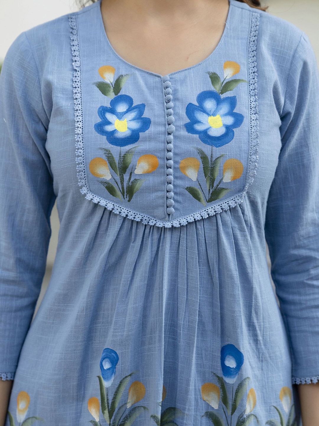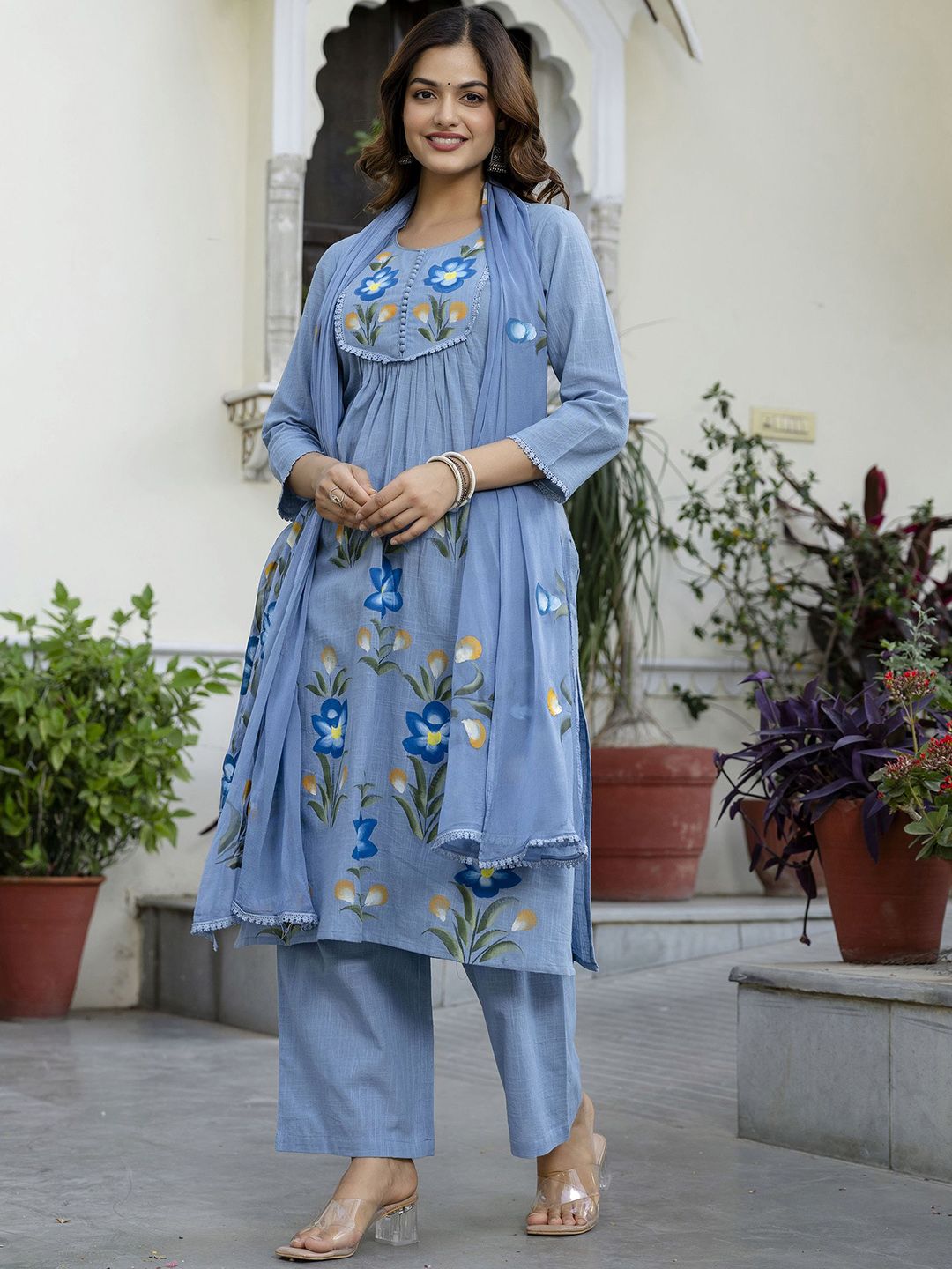 EthniFlair Women Floral Printed Cotton Kurta with Pyjama & Dupatta