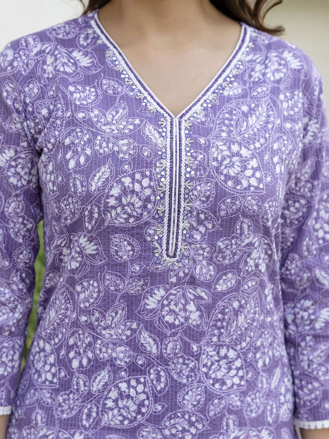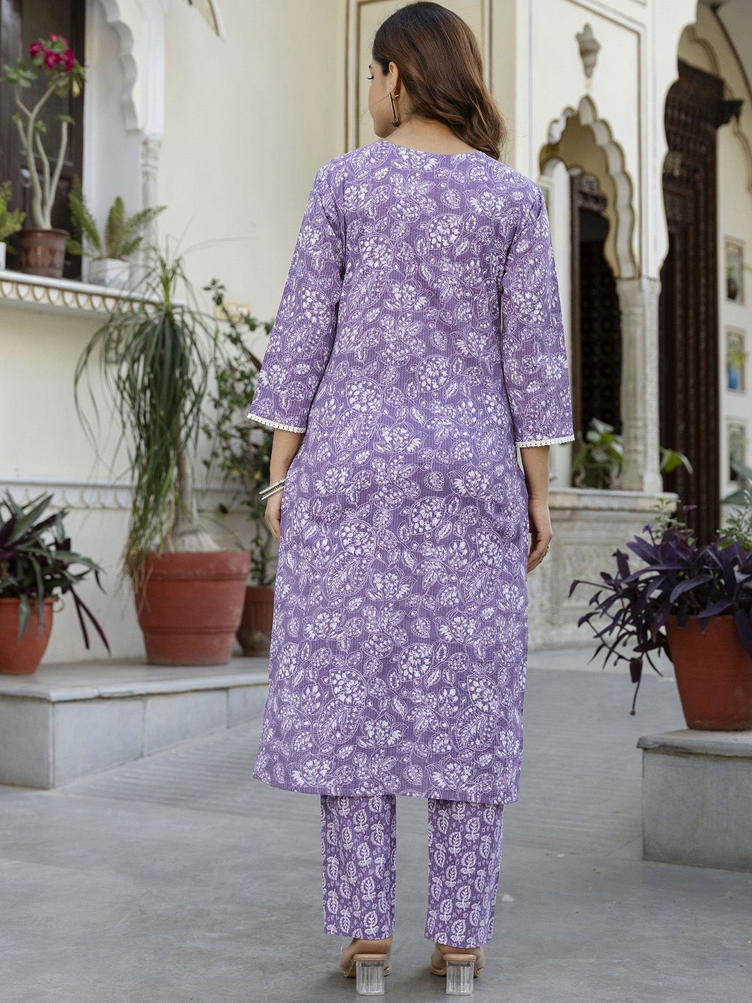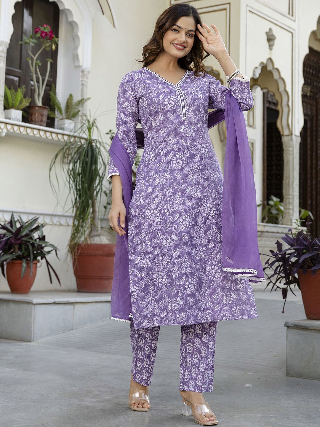 EthniFlair Women Floral Yoke Design Cotton Kurta with Trousers & Dupatta