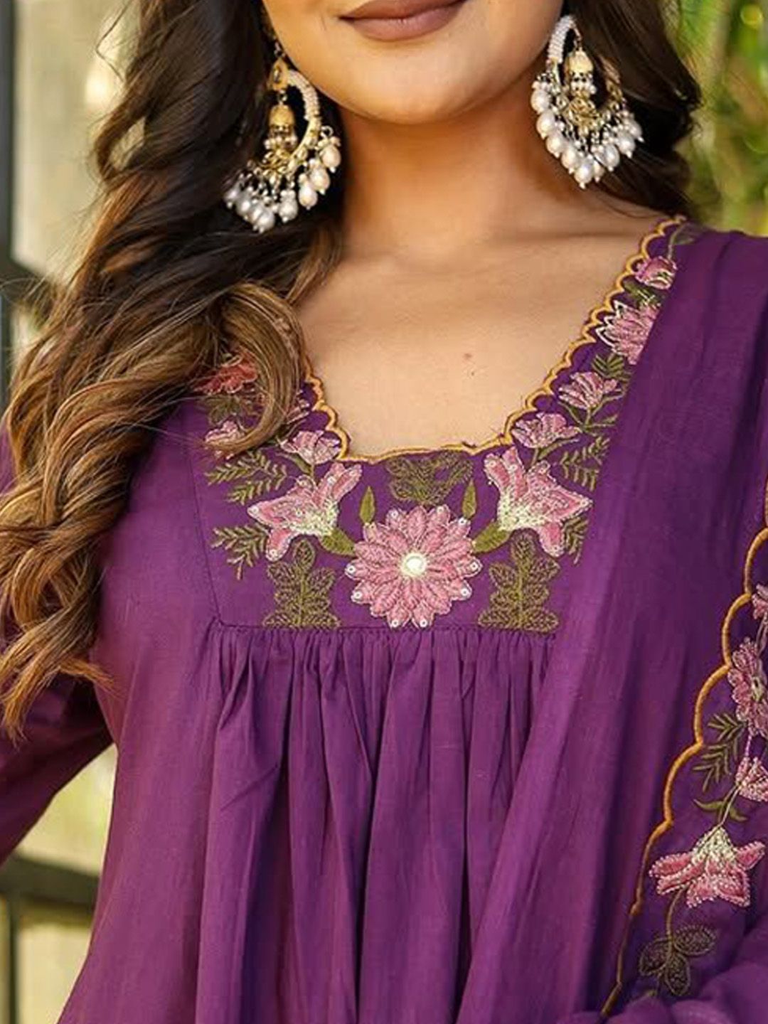 Ethnik Ease Women Floral Embroidered Anarkali Kurta with Palazzo & Dupatta