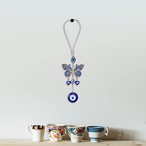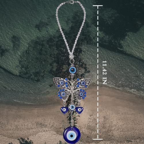 Evil Eye Butterfly Tassel Evil Blue Eye Charms for Rear View Mirror Evil Eye Beaded Decor Evil Eye Car Accessories Lucky Amulet Wall Hanging Decor for Car