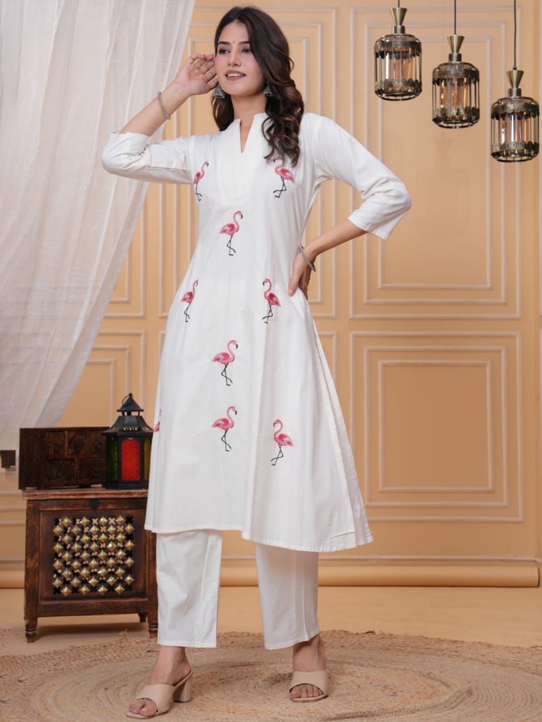 Fabmoha Women Animal Embroidered Thread Work Pure Cotton Kurta Set