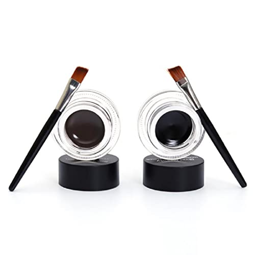 Facejewel Eye Makeup 2 In 1 Brown&Black Gel Eyeliner Water-proof Smudge-proof Set Eye Liner Kit With Brush