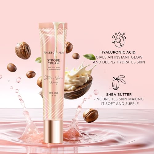 Lightweight feel - FACESCANADA Strobe Cream has a comfortable weightless feel so you can wear it all day long. Hydrating formula - The formula moisturizes your skin with the goodness oh Hyaluronic Acid & Shea butter. Lumious Dewy Glow- This Strobe cream offers a glassy illuminating shine. Quick drying - the fixer dries quickly after spraying giving a soft matte look. Instant illuminating Base- The Faces Canada Strobe Cream is filled with brightening particles that provide an instant, dewy glow to your skin. It sets a beautiful, glowing make up base for that day to night glam look!