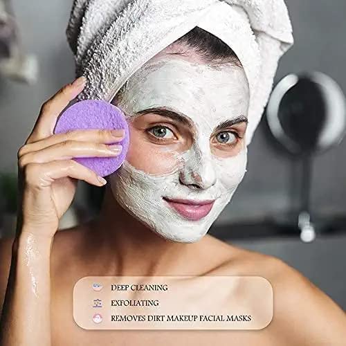 Facial Cleaning Wash Puff Sponge 12 Sticks Face Cleansing Pad Soft, Multicolor,Pack of 1