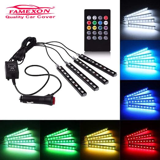 FAMEXON Atmoshphete 4x12LED Decorative Light Floor Strip Light Under Dash Lighting Kit Car Fancy Lights (Multicolor)
